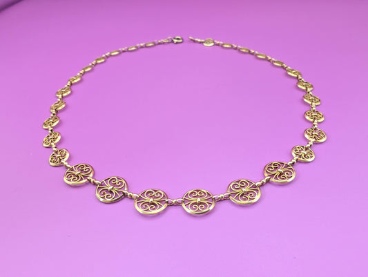 Rare Antique 18K Gold Edwardian Filigree Drapery Necklace, French Belle Epoque Chain