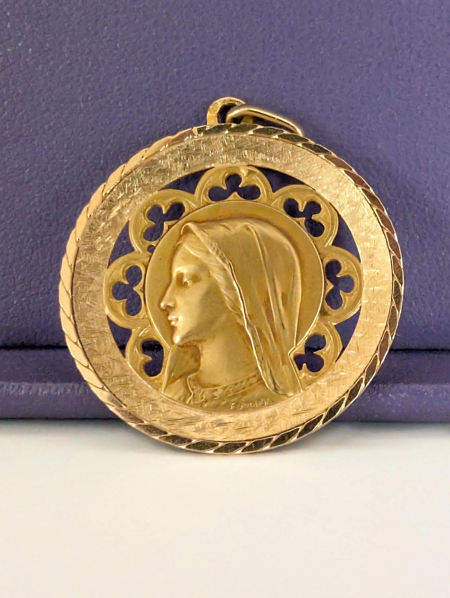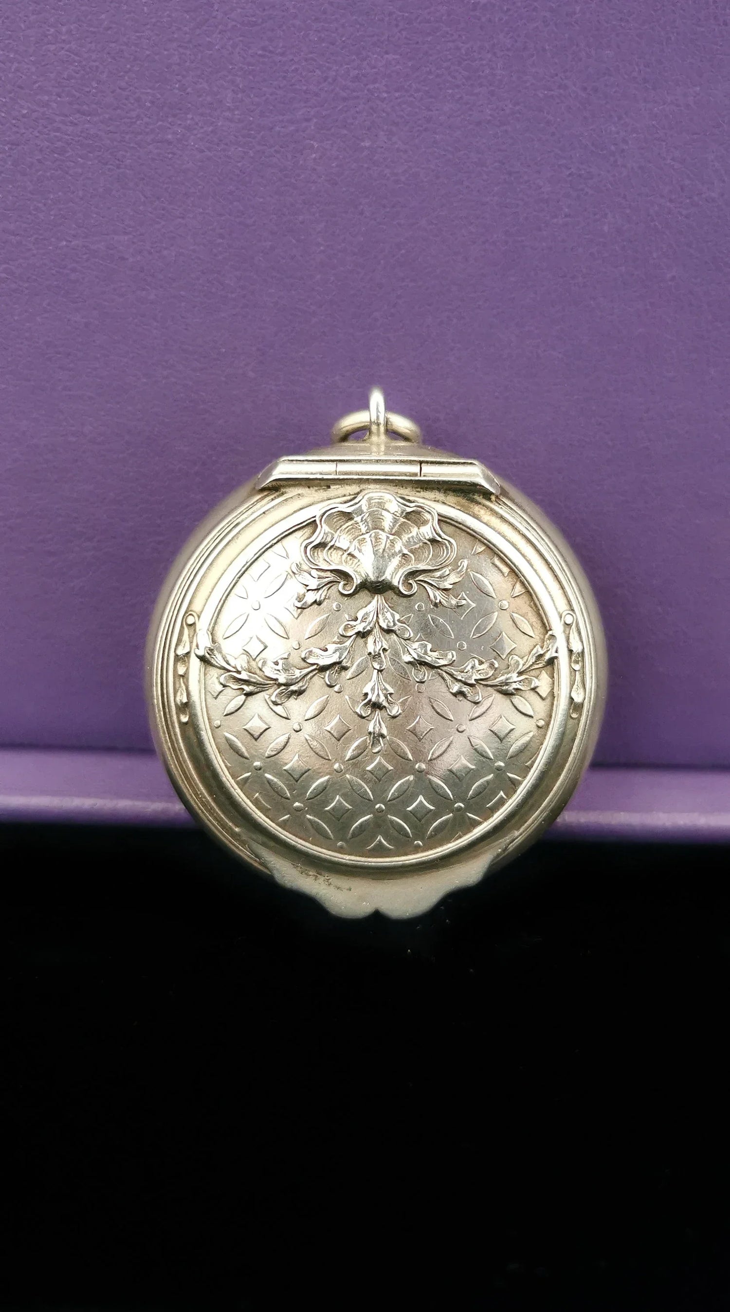 18K Gold Art Nouveau Locket with pearls & green gold : Antique Floral Engraved Pendant