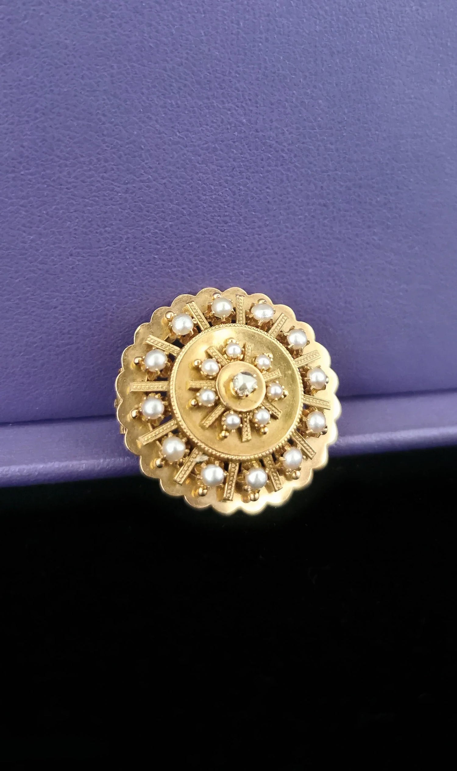 18K Gold Victorian Locket: Engraved French Napoleon III Pearl Pendant c.1860s