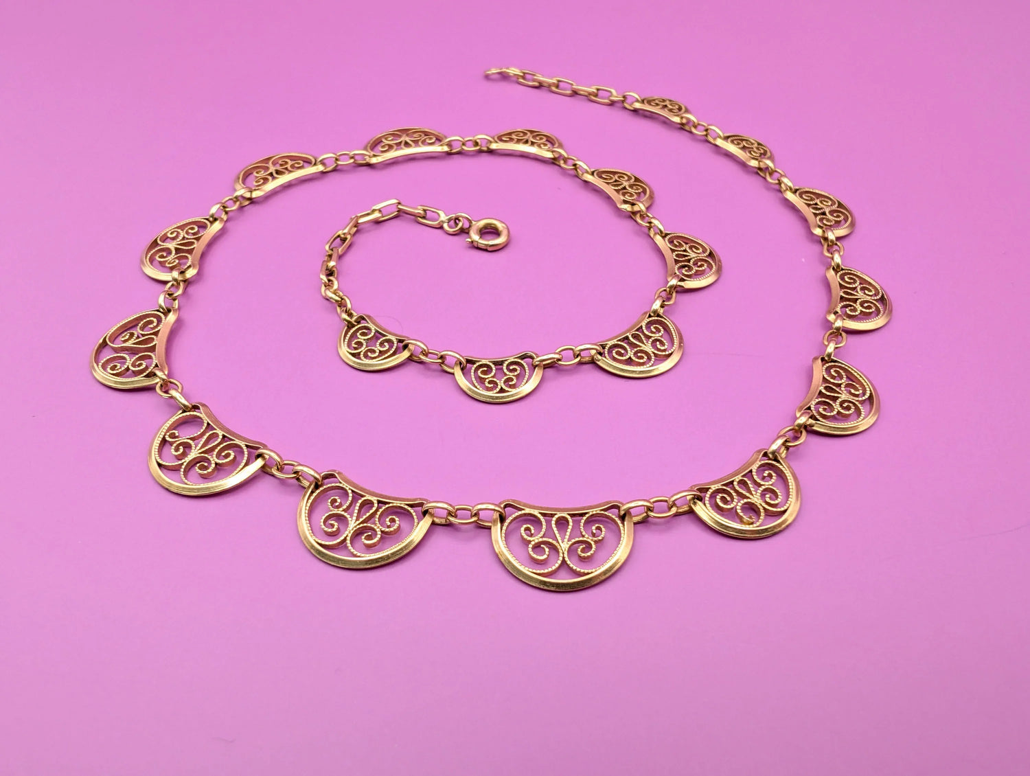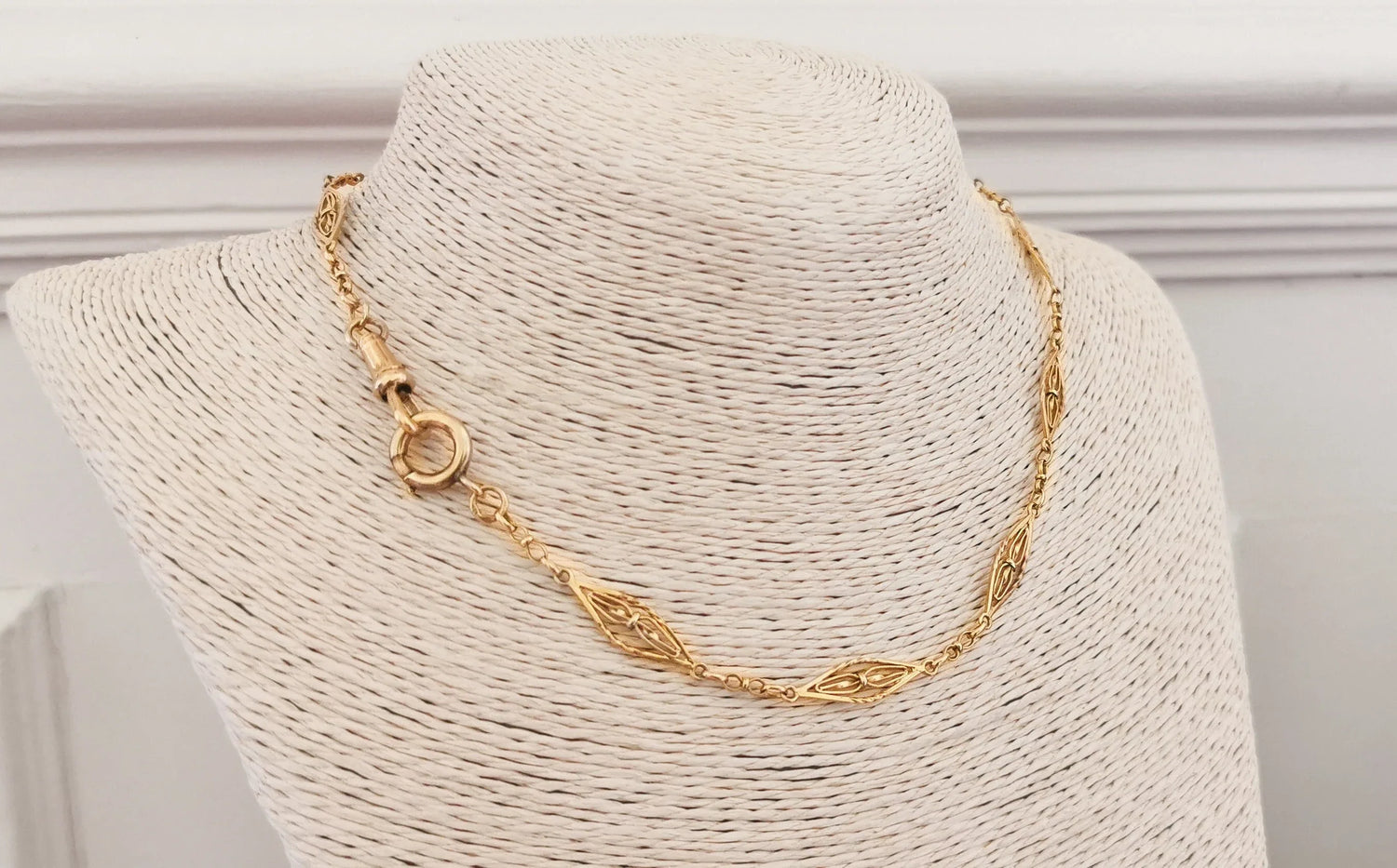 Rare Antique 18K Gold Edwardian Filigree Drapery Necklace, French Belle Epoque Chain