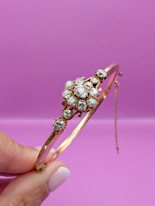 Antique 14K Rose Gold Diamond Bangle Bracelet: French Edwardian Jewelry
