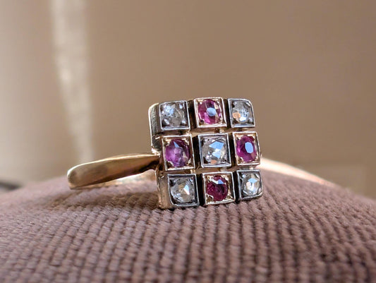 18K Gold Art Deco Ring: Diamond & Garnet Engagement Ring
