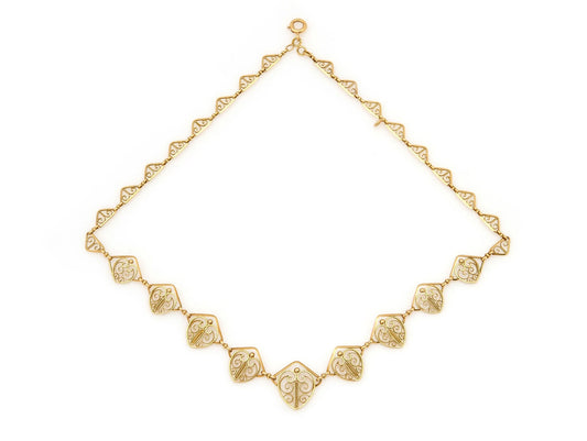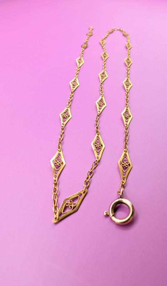 Antique Edwardian 18K Gold Filigree Necklace, 1900 French Chain