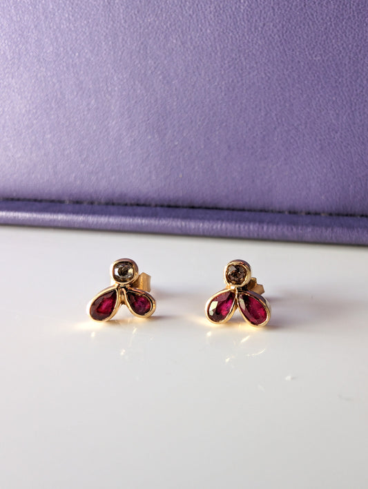 18K Rose Gold Toi et Moi Ring: Antique Diamond & Garnet Edwardian Engagement Ring