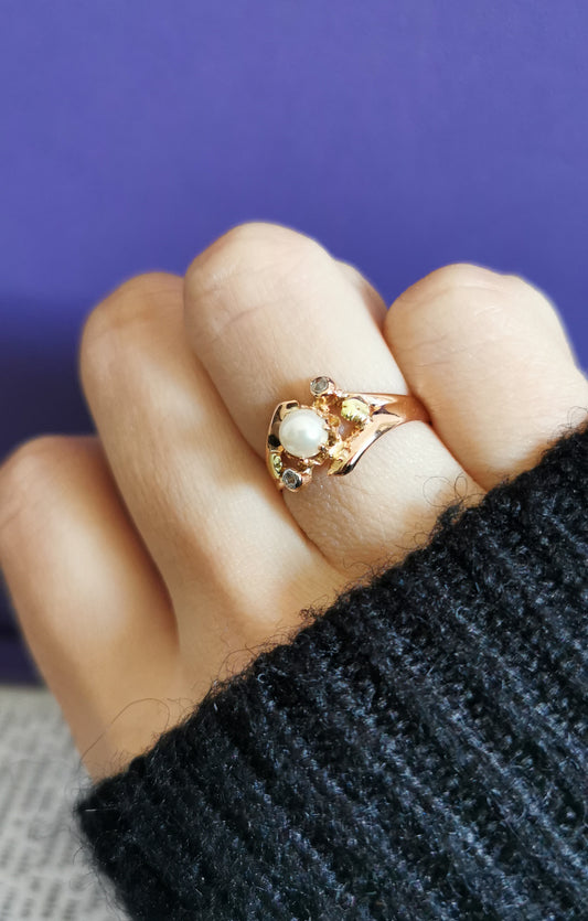 18K Antique Pearl Diamond Ring Art Nouveau Ring 1900 Rose Gold ring antique french jewelry Antique french diamond ring Antique Pearl ring