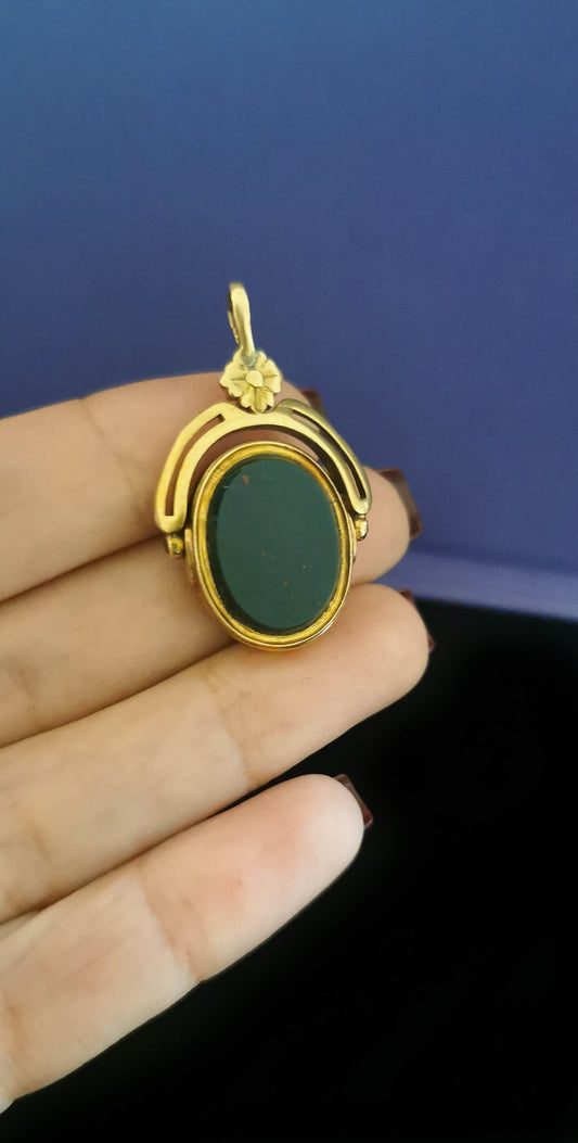 1920 Antique 18ct Gold Bloodstone Spinner Fob Antique 18K fob pendant gift for Her Antique Fob gift for him
