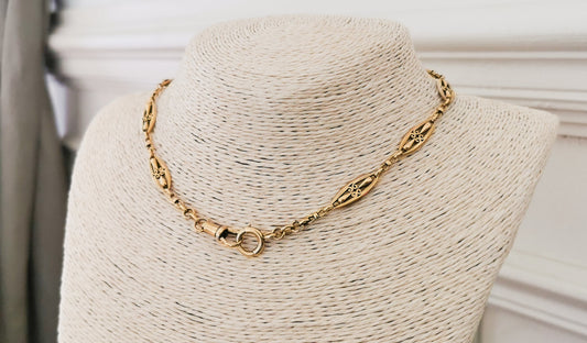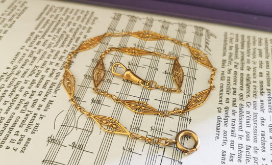 Antique French Gold Filled Watch Chain with Swivel Clip Clasp Gift for her