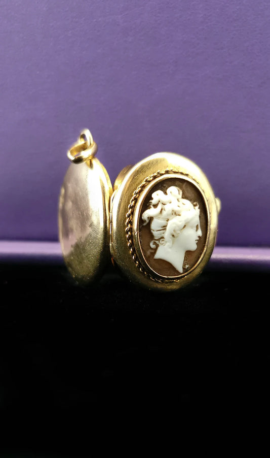 Antique 18K Gold and Hand Carved Cameo Locket Victorian XIX Century French Locket Antique Gold locket Antique picture locket Gift for her