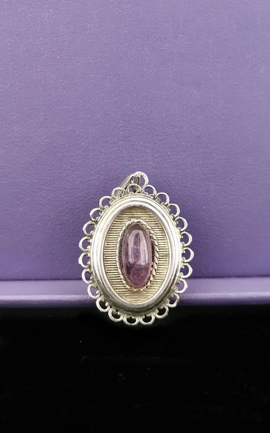 Antique Amethyst French 1900s Edwardian silver photo locket with designed engraved frame Photo Holder Gift for Her
