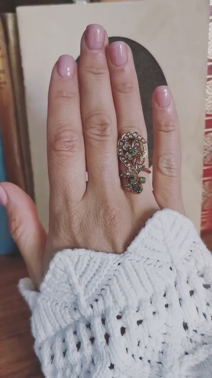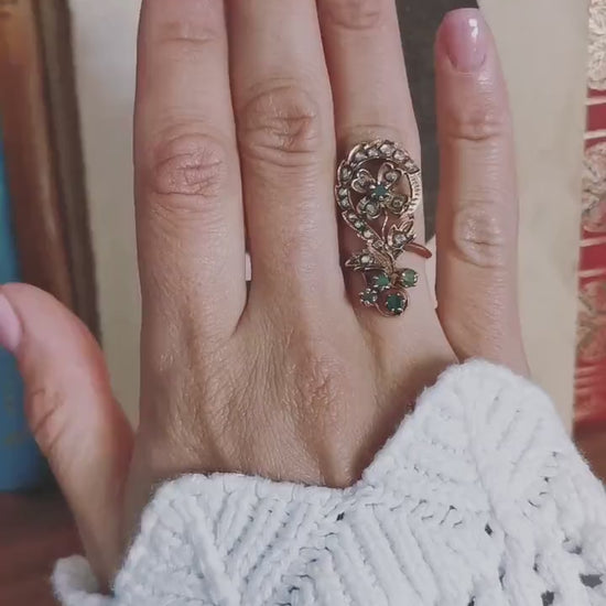 9K Antique Emerald Diamond Ring Art Nouveau Ring 1900 Gold ring Antique Emerald Ring Antique ring Antique diamond ring