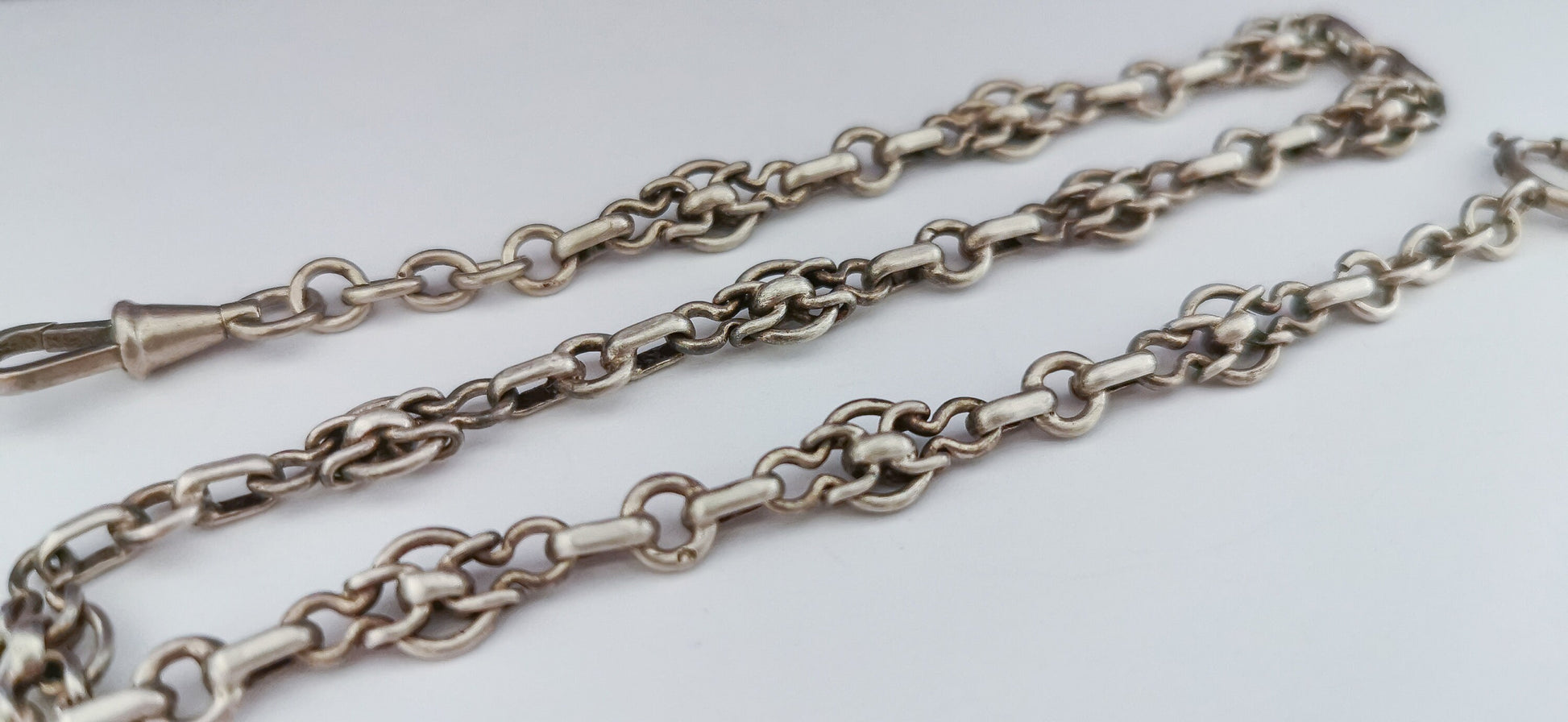 This exquisite chain is a true representation of the Victorian era's dedication to craftsmanship and style. It's not just a piece of jewelry; it's a work of art, a conversation starter, and a statement of timeless elegance