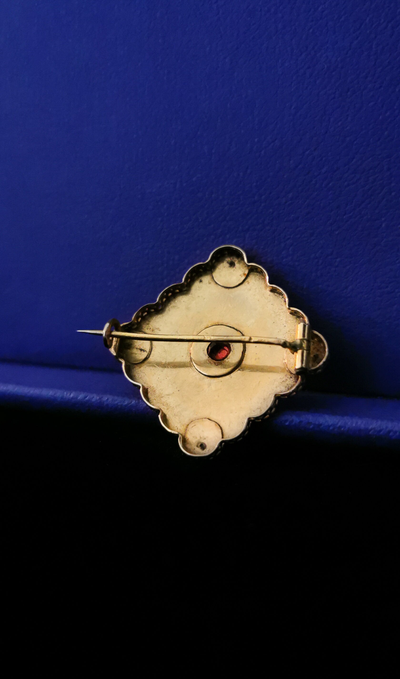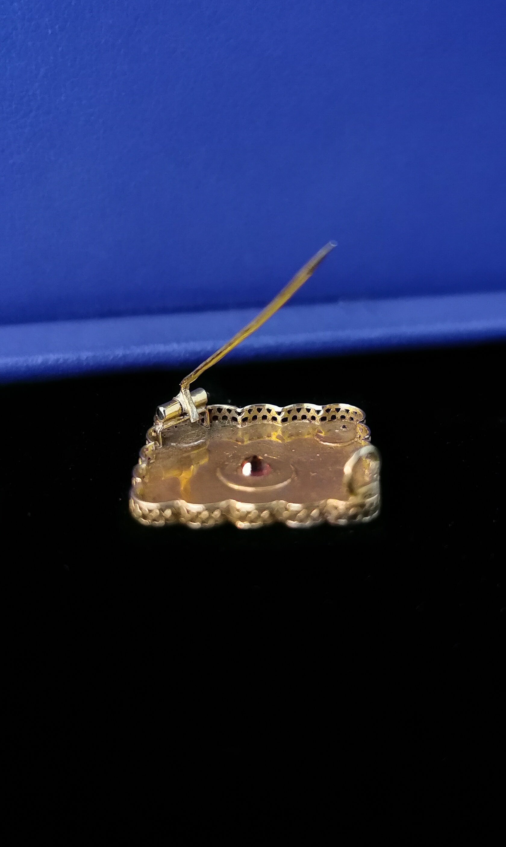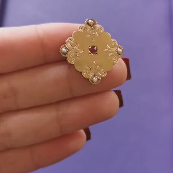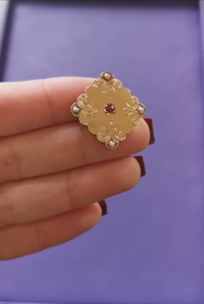 18ct Victorian gold brooch with seed Pearls and Ruby Napoleon III Gold Brooch Antique French Brooch