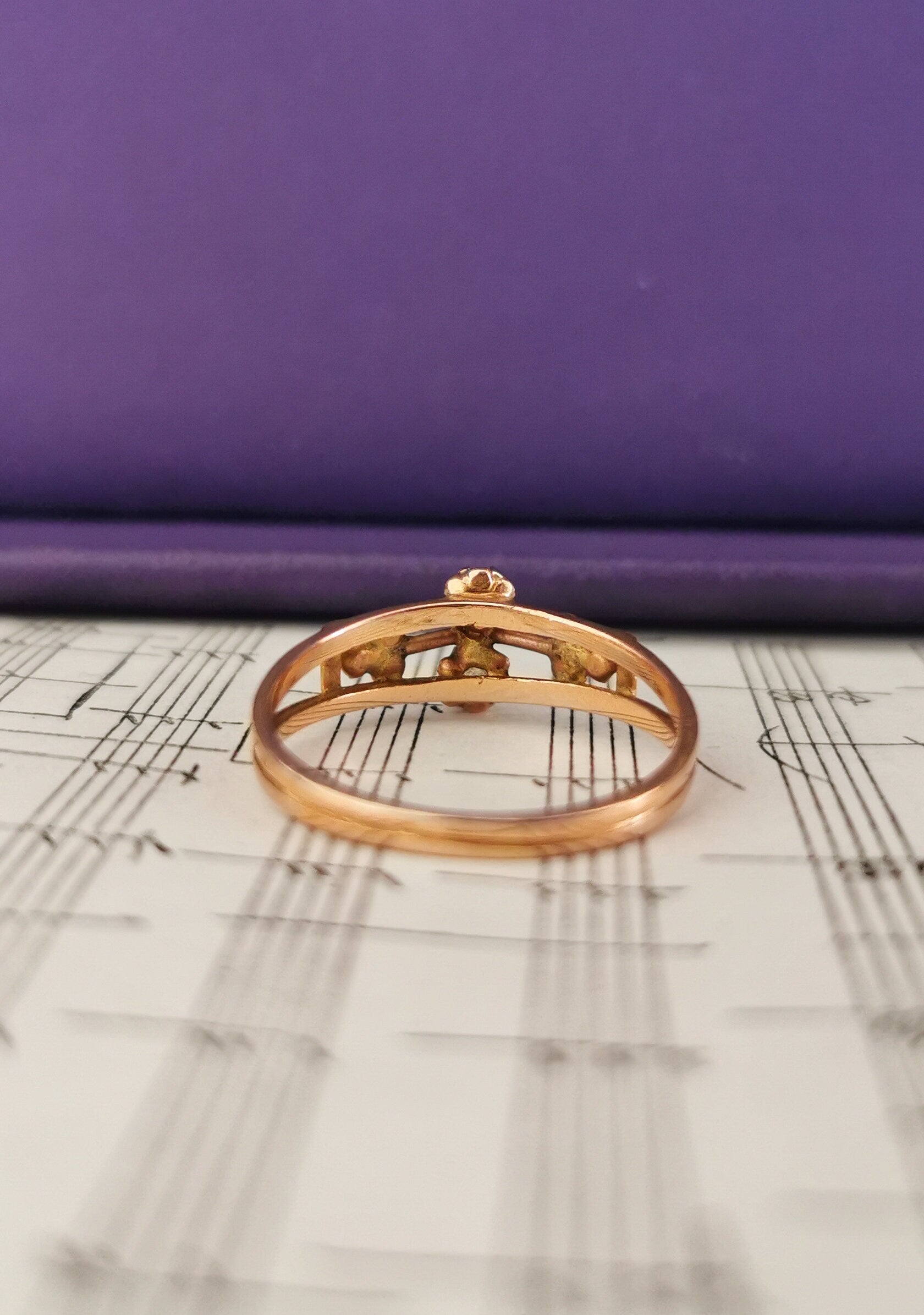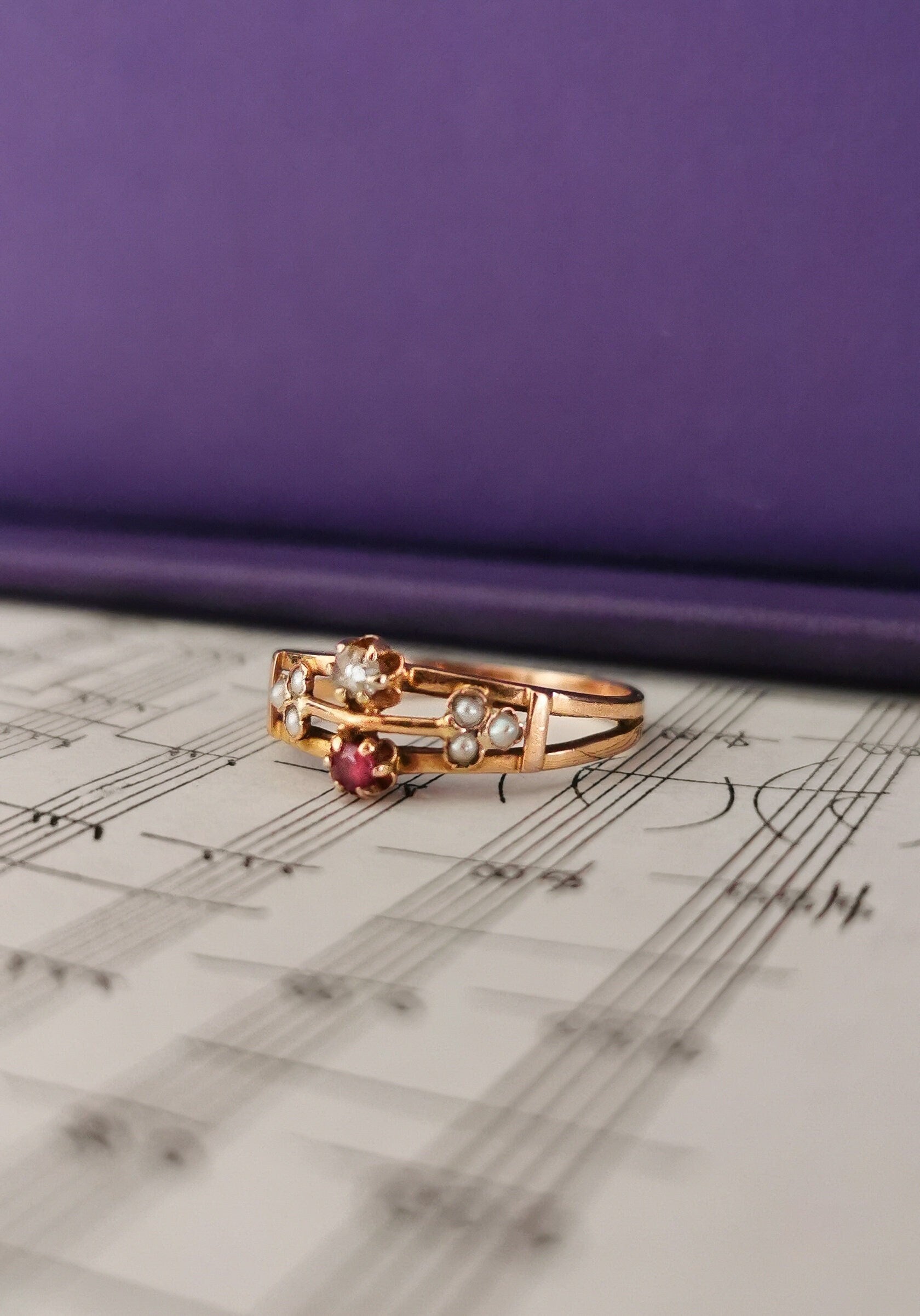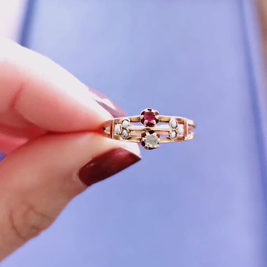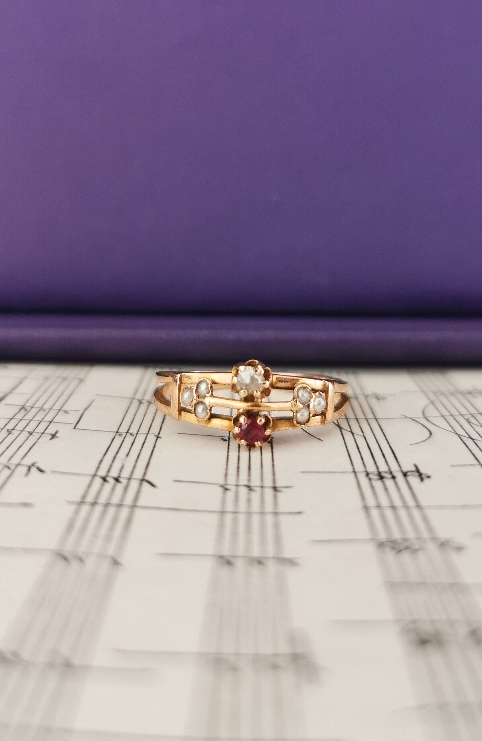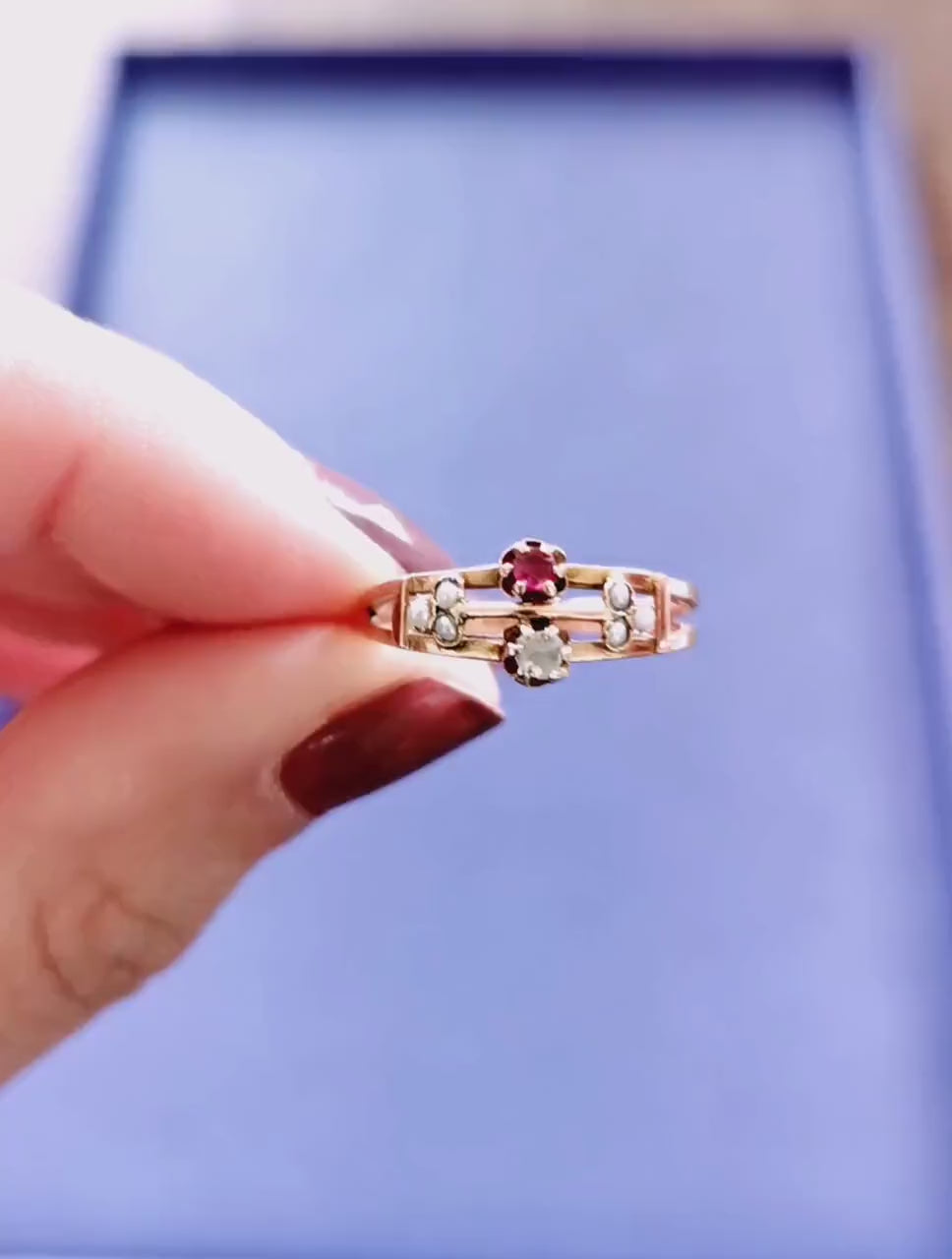 18K 1900 Antique Diamond & Ruby Ring 18K Antique Pearl Gold Ring Antique French pearl Ring Victorian Ruby Ring gift for her