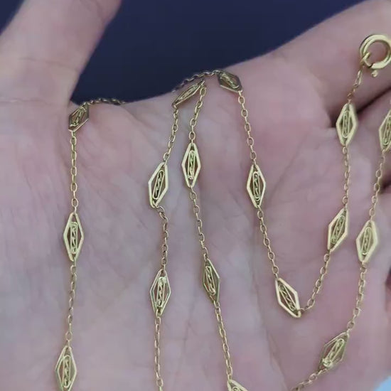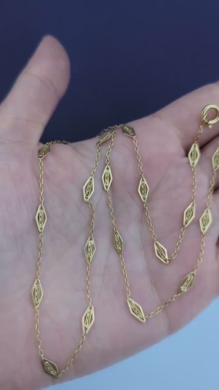 18K Antique Necklace 1900 Antique Filigree gold Chain Gold Necklace Gold Chain gift for wife Antique Necklace gift for her