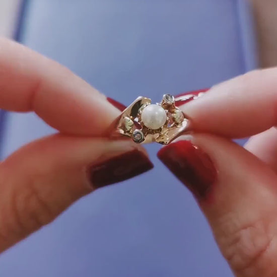 18K Antique Pearl Diamond Ring Art Nouveau Ring 1900 Rose Gold ring antique french jewelry Antique french diamond ring Antique Pearl ring