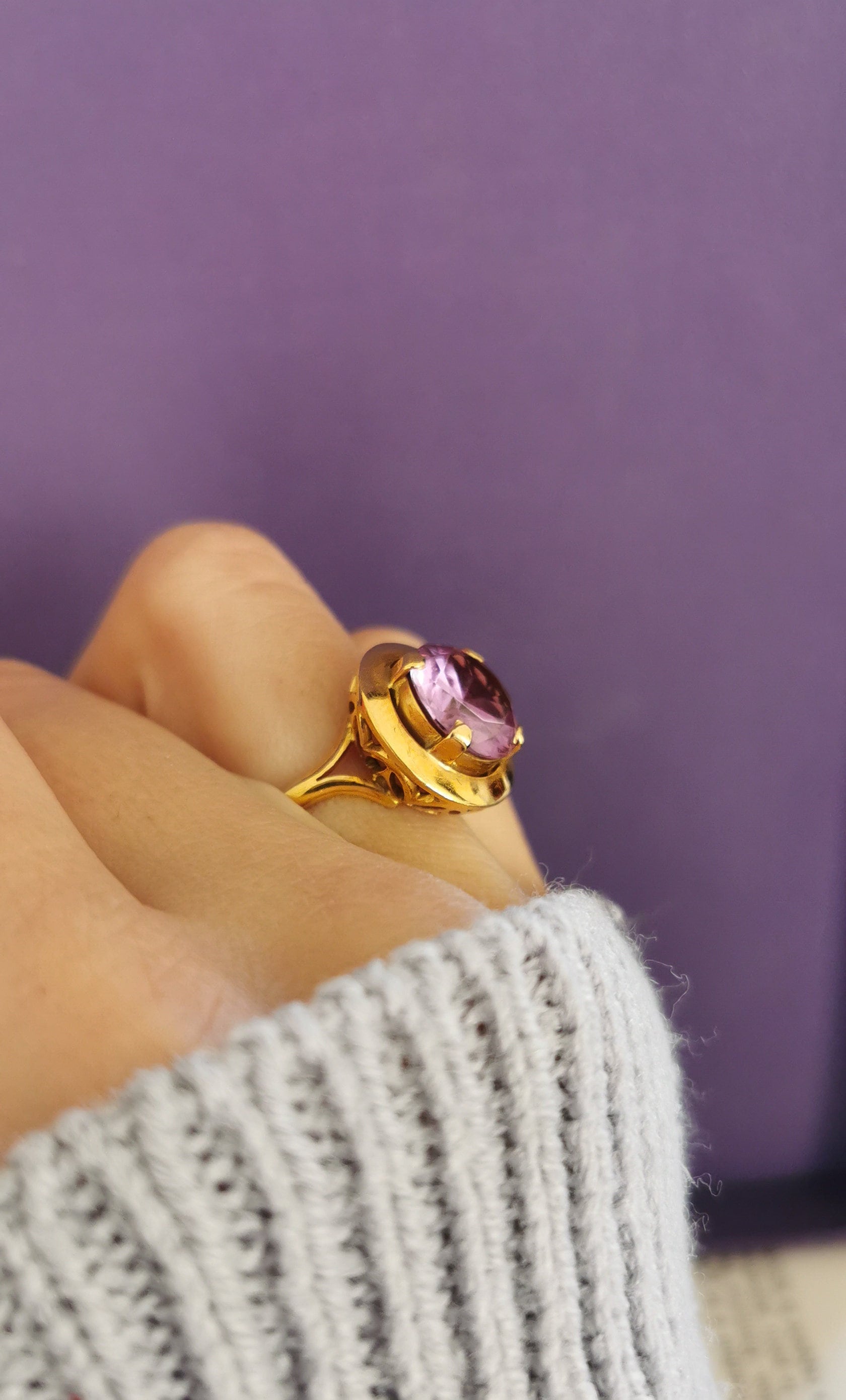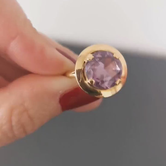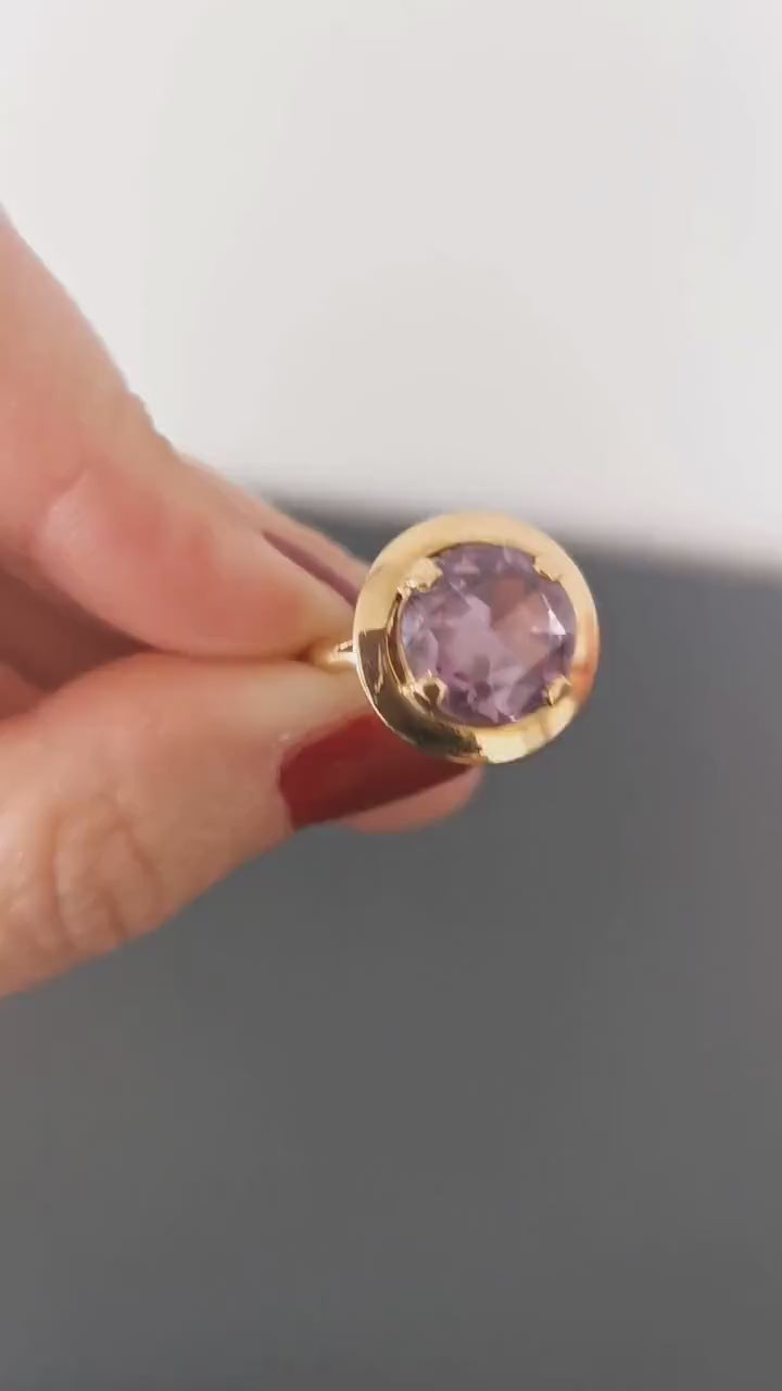 18K Big Amethyst Cocktail Ring French 18ct Gold Amethyst Ring Gold and Amethyst French Ring 18ct Amethust Ring Gift for Her