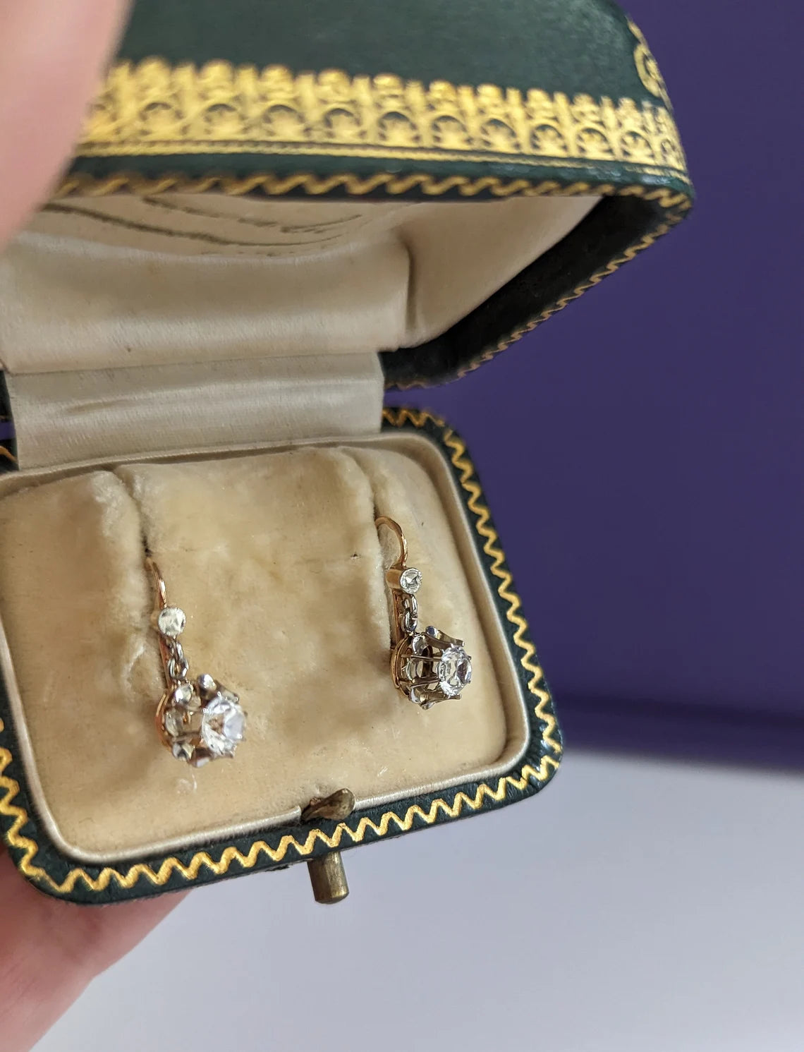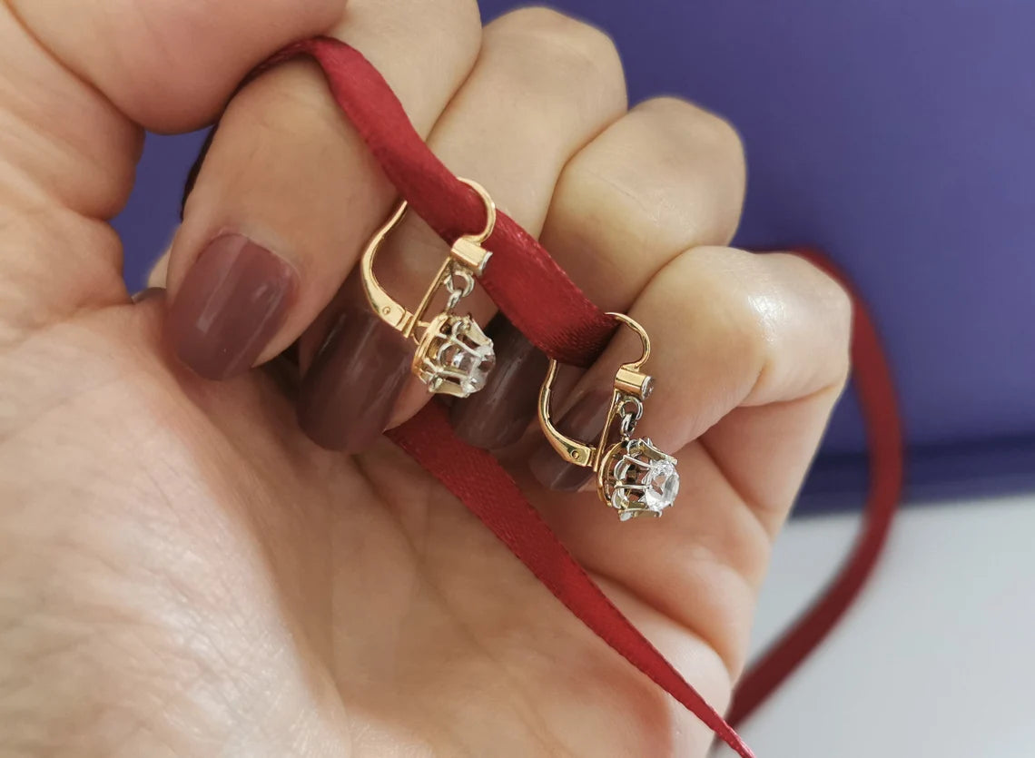 18K Earrings Art Deco Earrings 18k Drop Earrings Antique French Earrings Antique Gold earrings gift for her Vintage Gold earrings