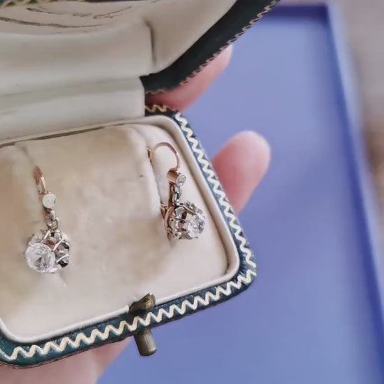 Exquisite Trembleuse Earrings in 18K White and Yellow Gold Setting - Art Deco French Elegance