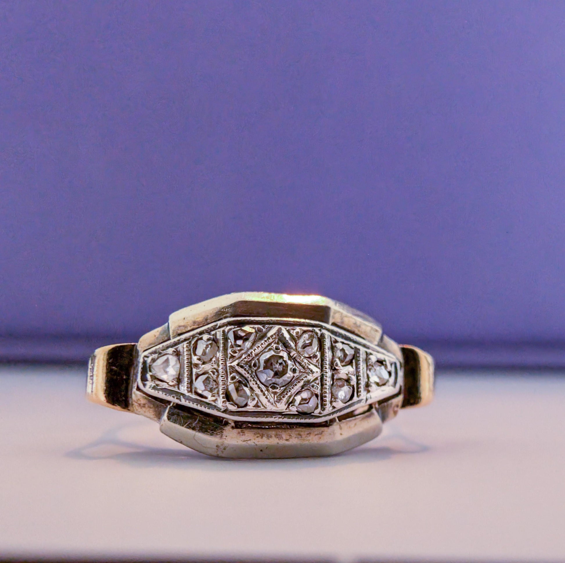 18K Art Deco French Ring 18K diamond ring Antique 18K Diamond Ring Gold Diamond Engagement Ring Gift for Her