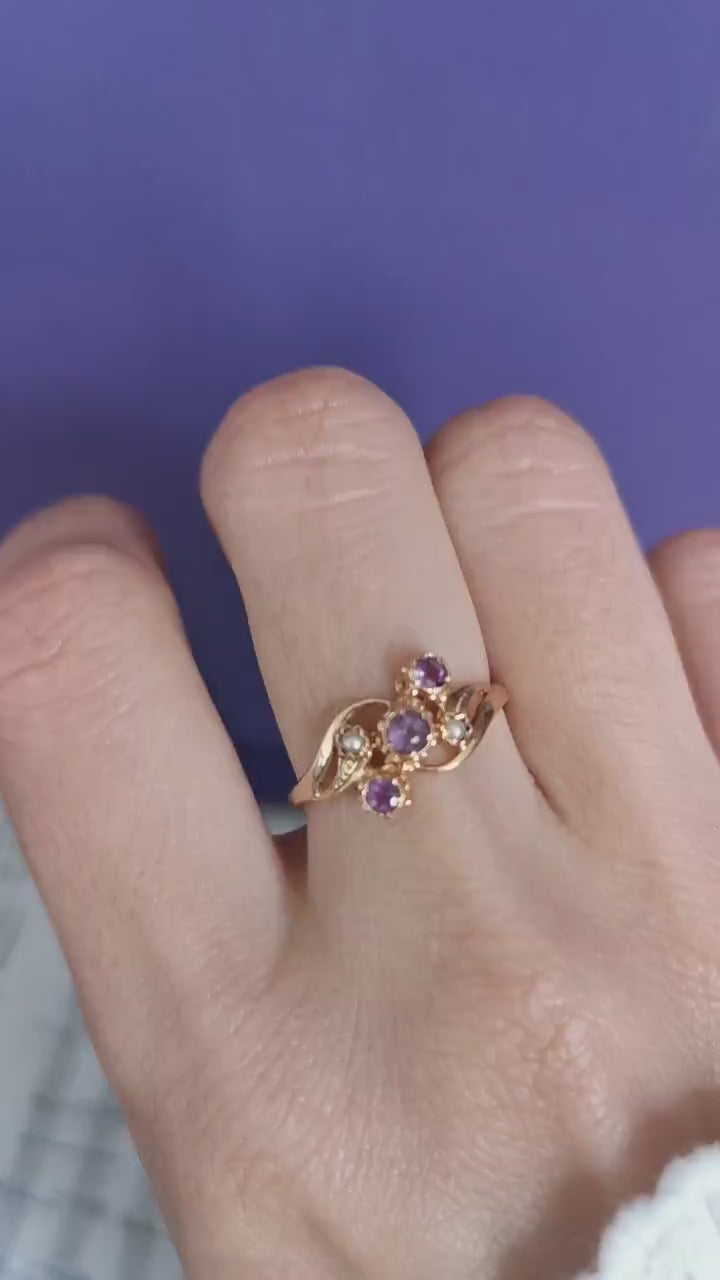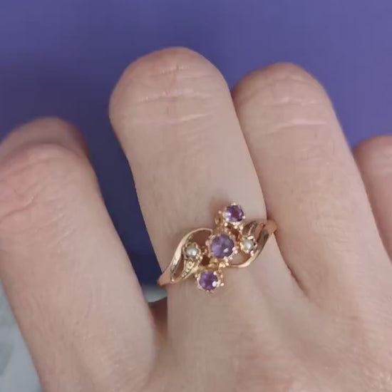 18K Gold Art Nouveau Amethyst & Pearl Ring - 1900s Antique