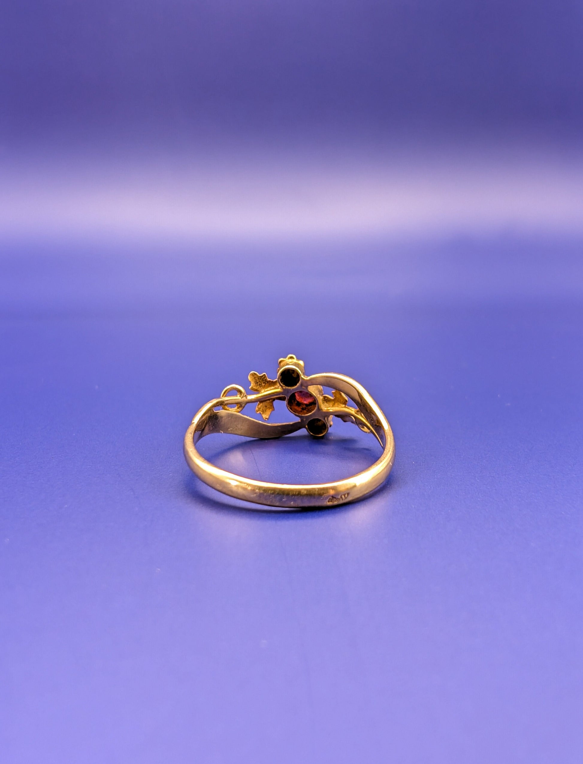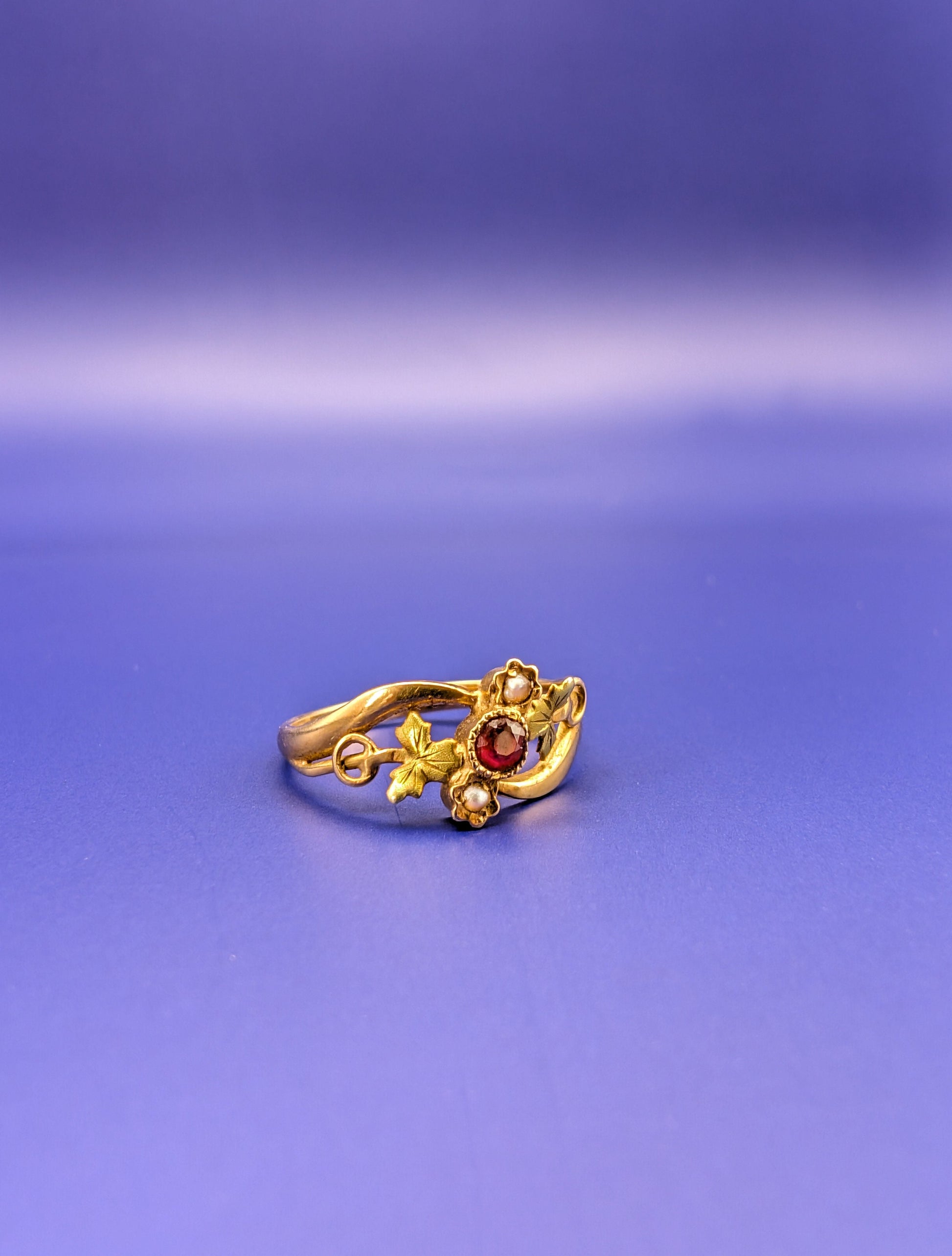 18K Gold Art Nouveau Ring: Antique French Ruby Pearl Ring