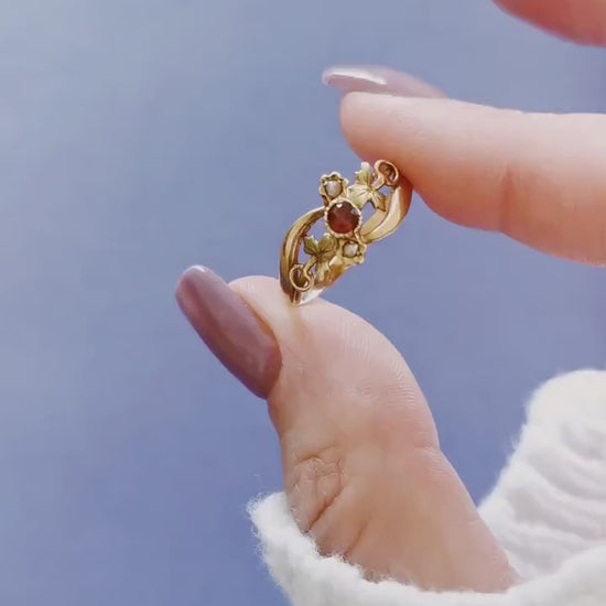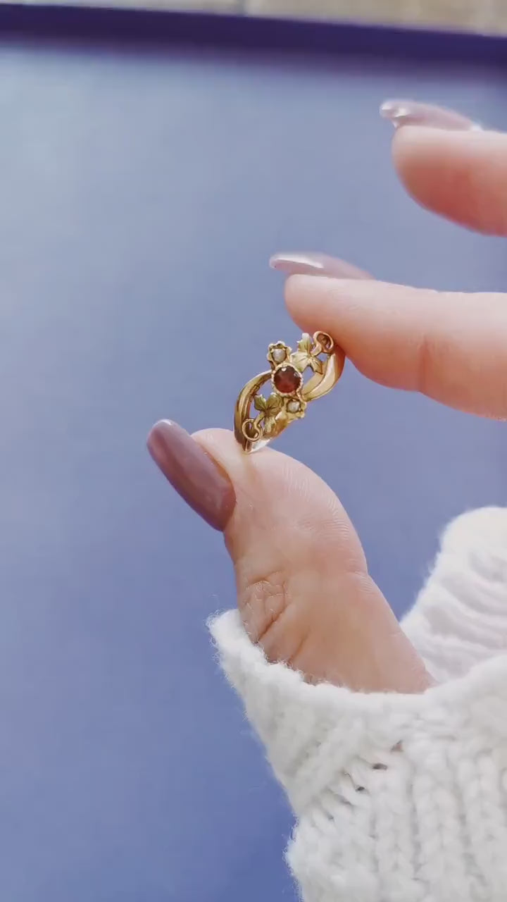 18K Gold Art Nouveau Ring Antique French ring Antique 18K Ruby and green gold ring Gift for Her Pearl ring gift for wife