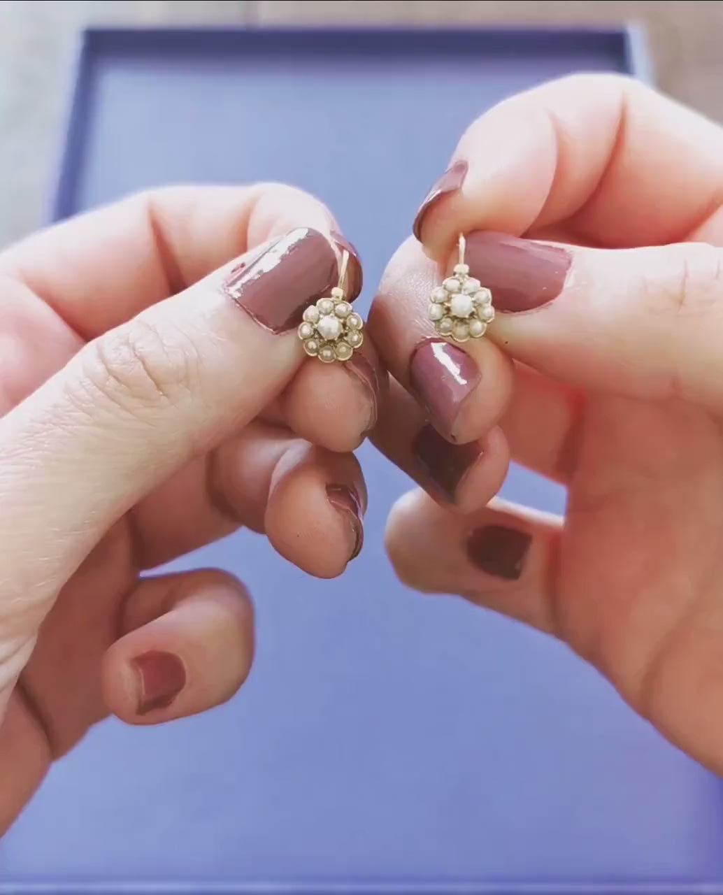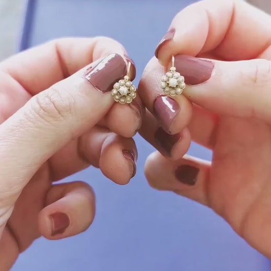 18k Gold Earrings Gold Antique Dormeuses Victorian Earrings Gold Earrings with natural seed pearl Napoleon III 18K Gold Earrings gift for Her