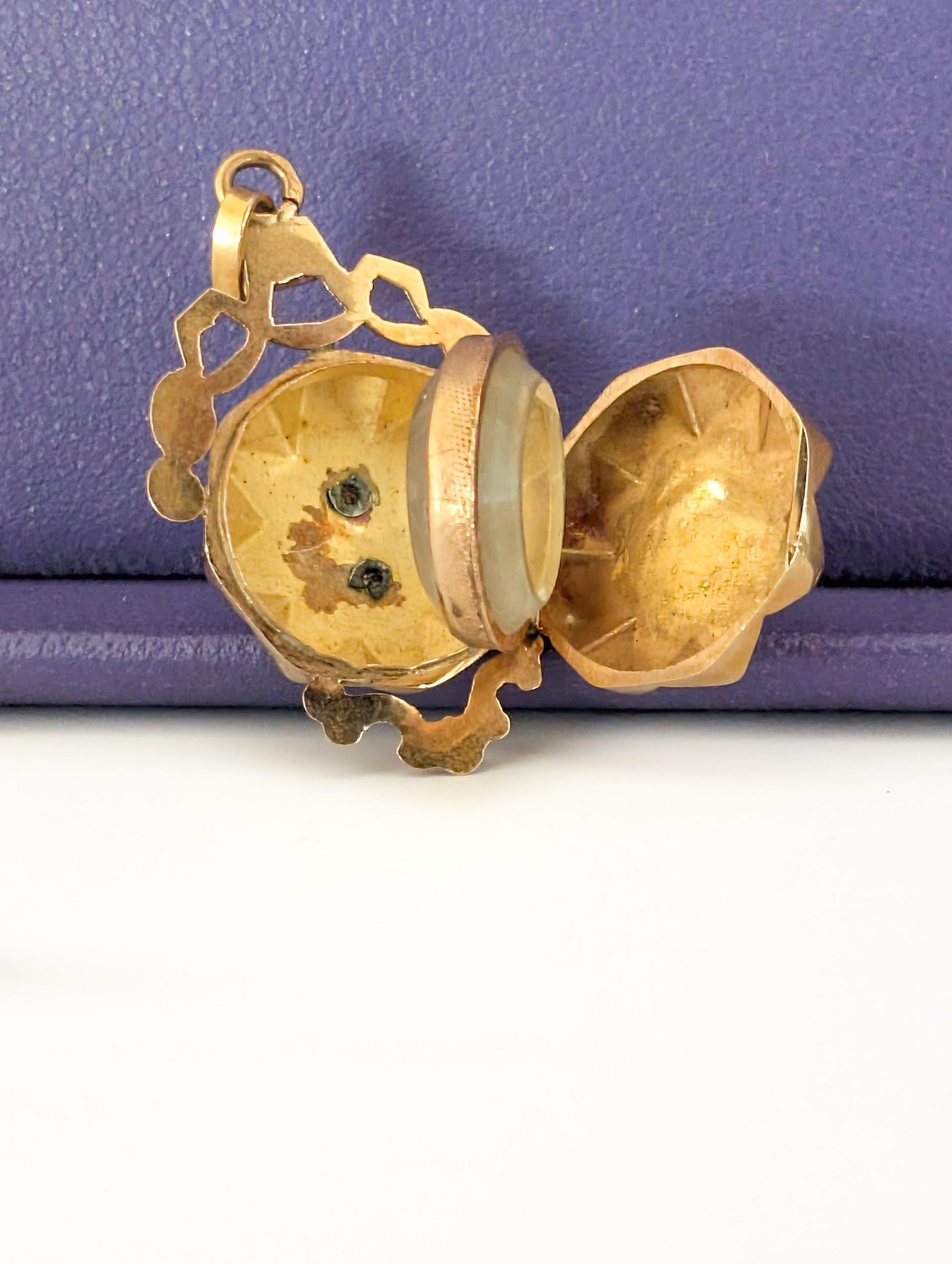 The locket closes securely, offering a safe space within for a small trinket or special memory. What truly sets this art piece apart is its exceptionally thick glass partition, enhancing its uniqueness and allure. Prepare to be captivated by this piece of history, a treasure that invites you to fall in love and cherish its timeless beauty.