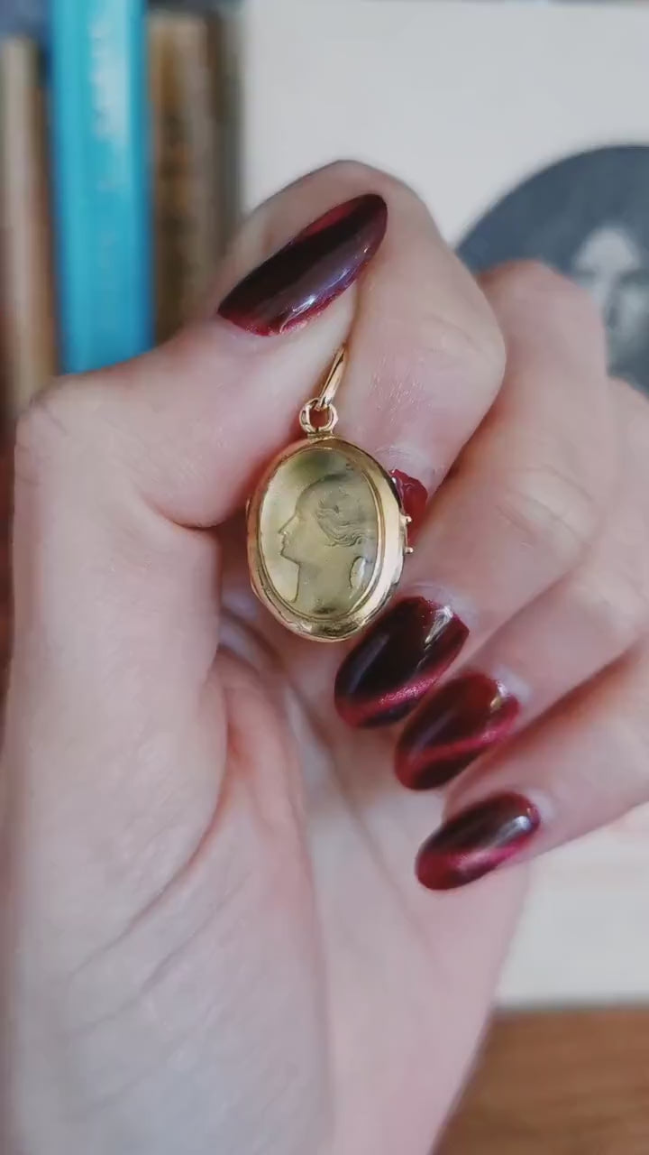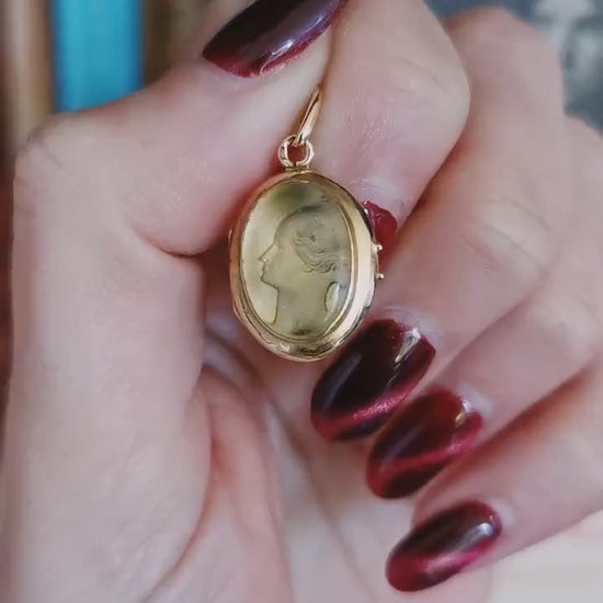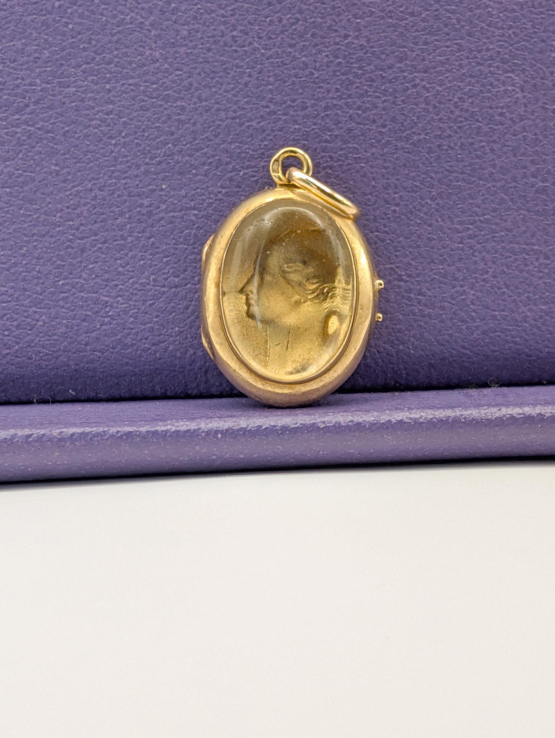 While the interior of the locket may not accommodate large gemstones, it's perfect for holding small gems, a cherished photograph of a loved one, or even pressed flowers from a memorable wedding bouquet. Its 18k gold setting adds the finishing touch to this heirloom, the locket is hallmarked with the makers hallmark, and an eagle head hallmark we had it tested to certify its 18K gold purity. You will find a gold plated medal inside with a lady's profil.