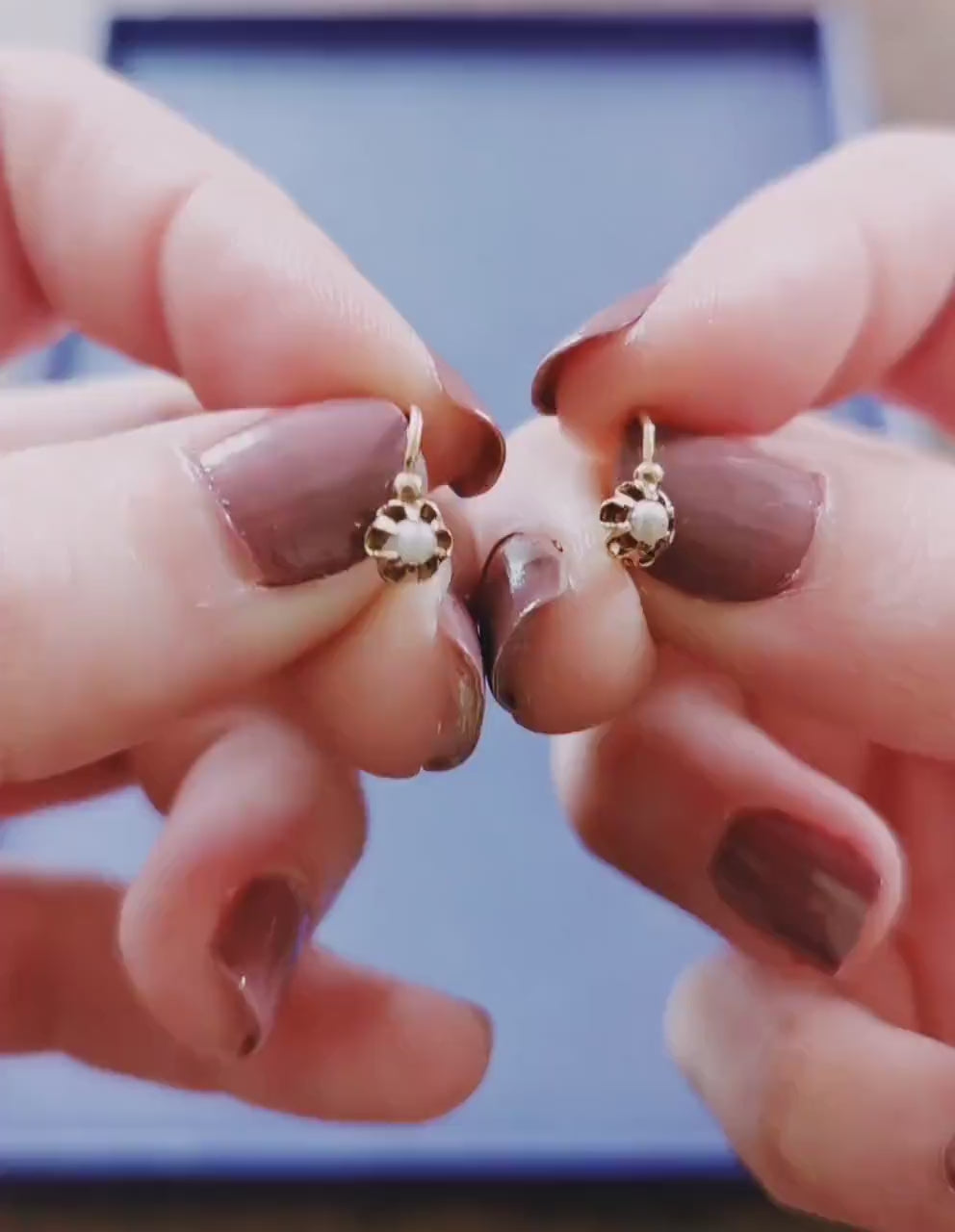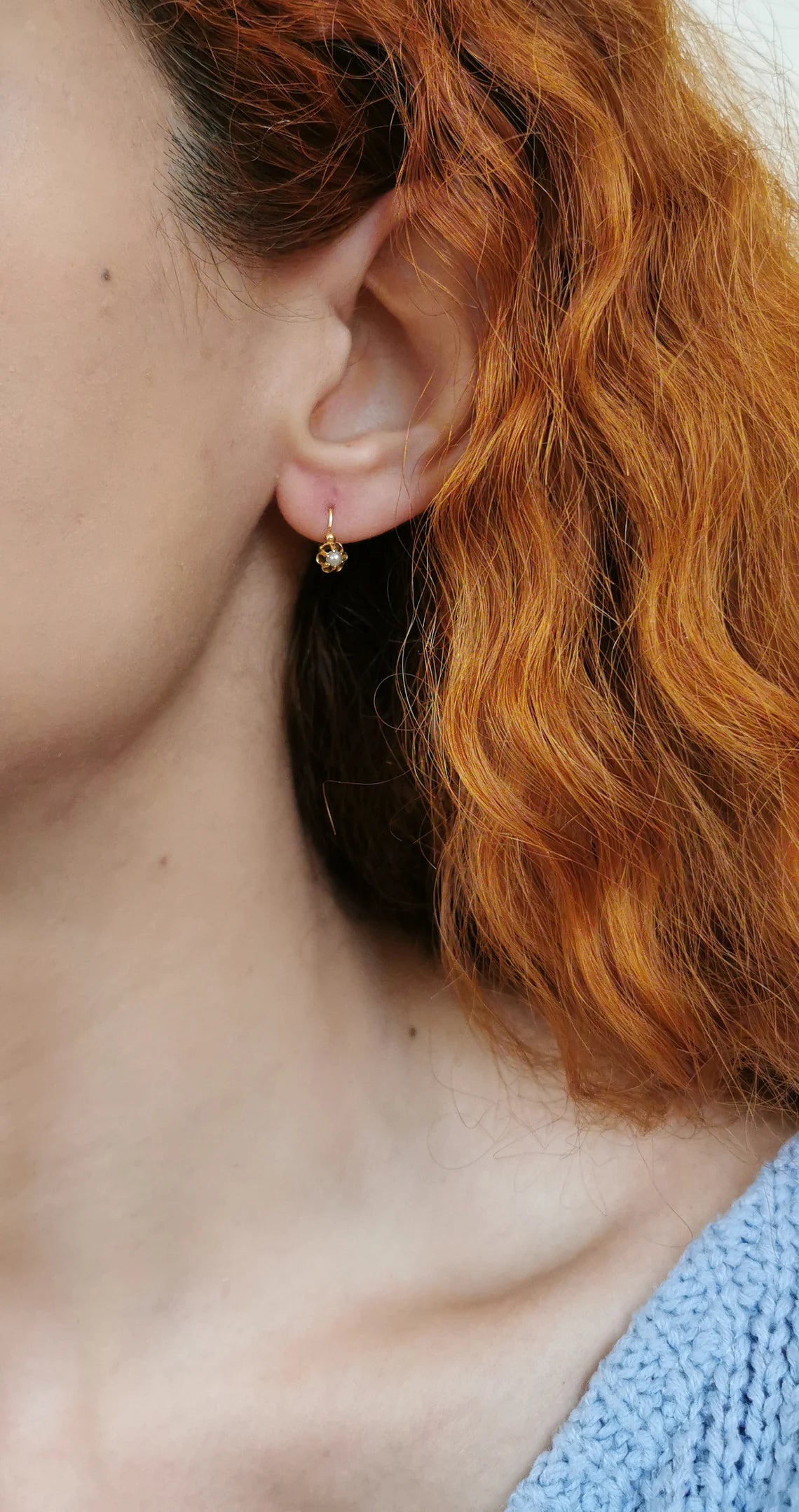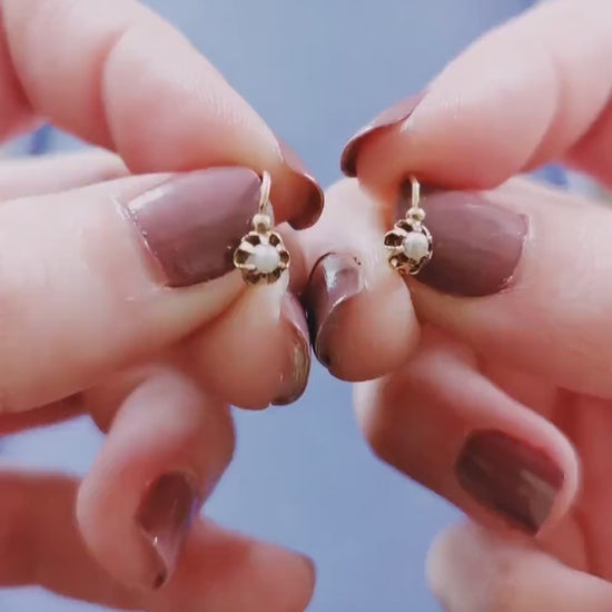 18K Gold & Pearl Antique Dormeuses Edwardian Pearl Earrings 18ct Gold French earrings Antique 18K Gold Earrings gift for her