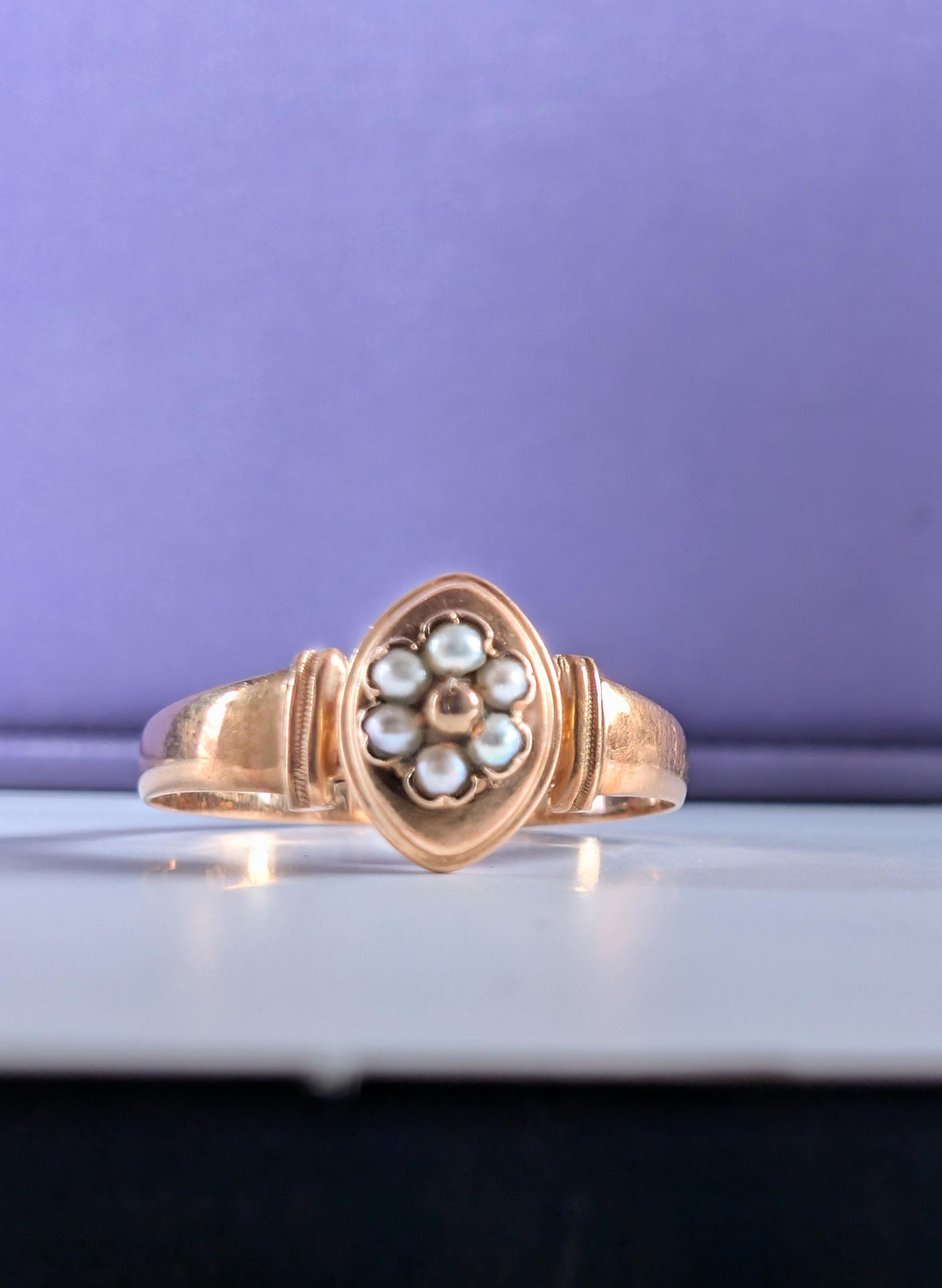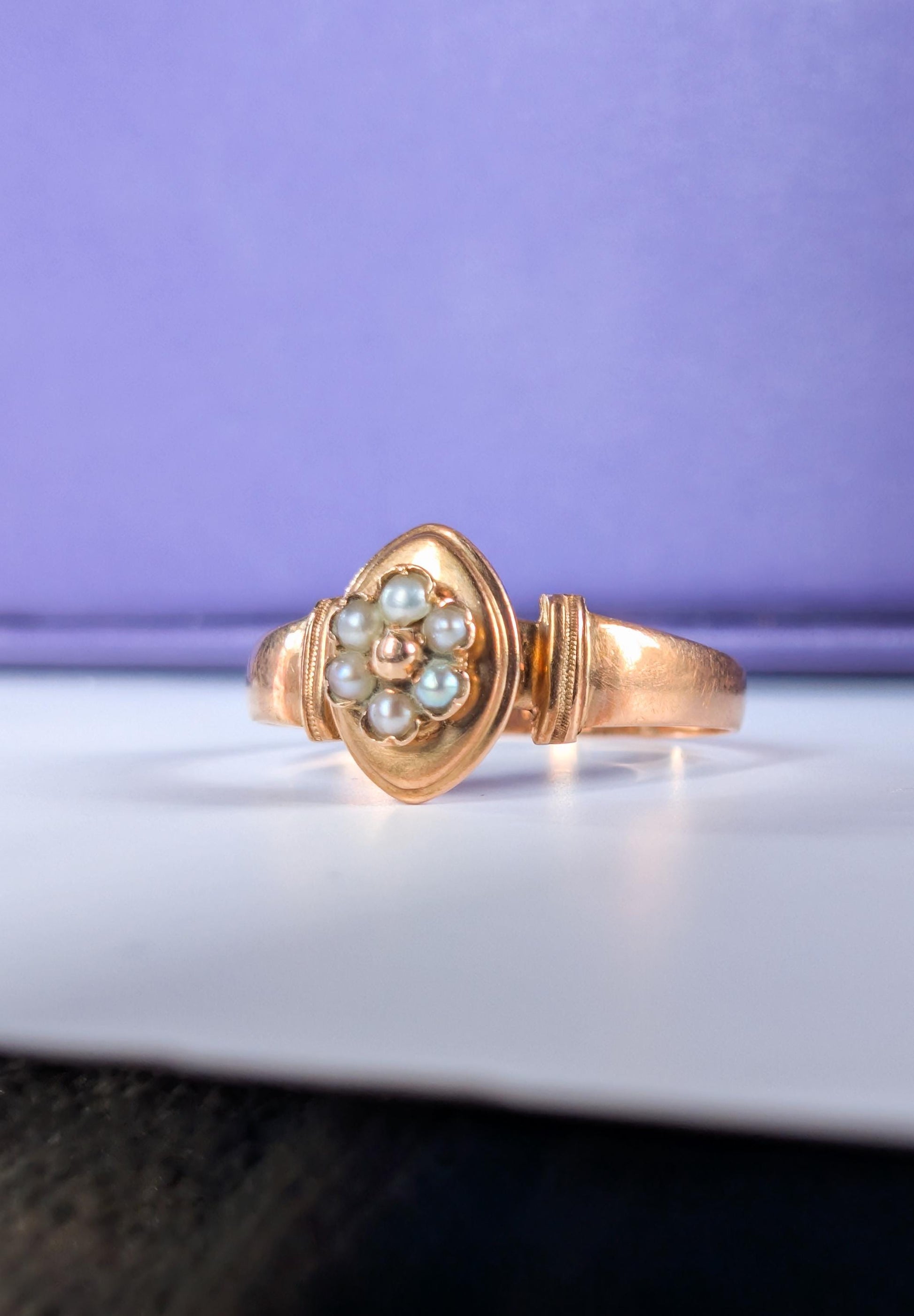 1850s Antique Ring 18K Ring with pearls Victorian gold ring gift for her Antique French Ring Napoleon III ring