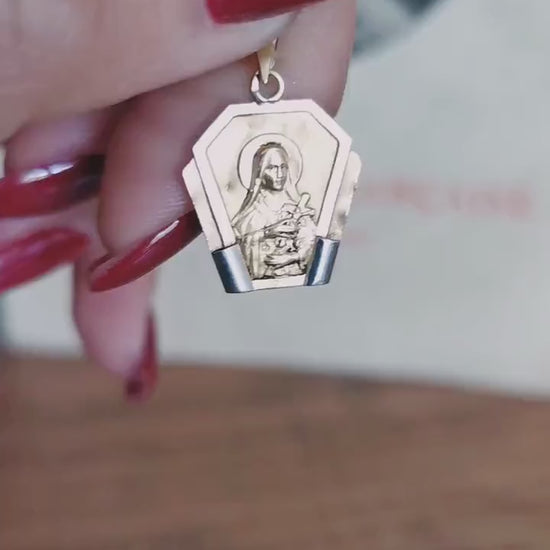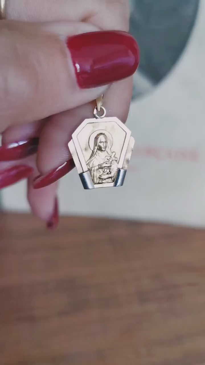 18K St. Therese of Lisieux Saints for kids 18K Antique Religious Pendant Therese Religous Medal French religious medal Gold baptism medal