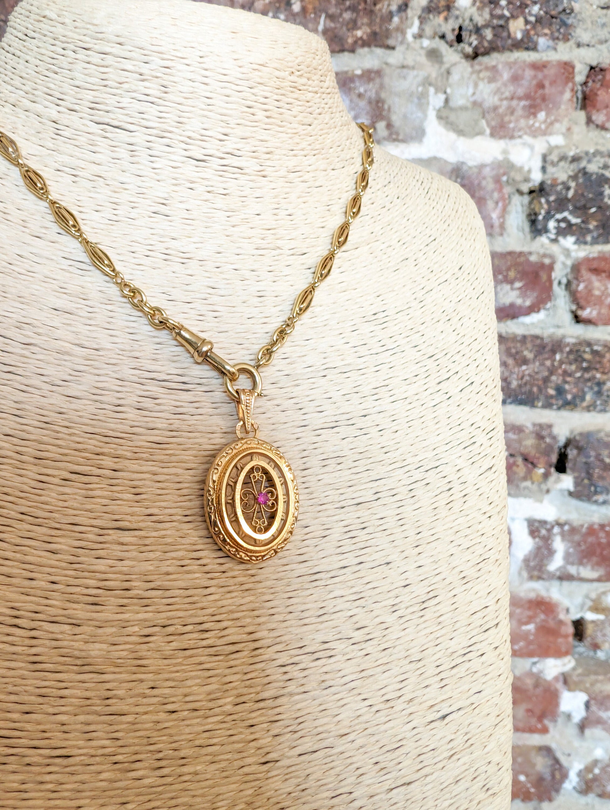 18K Gold Victorian Garnet Pendant: Antique Filigree Jewelry