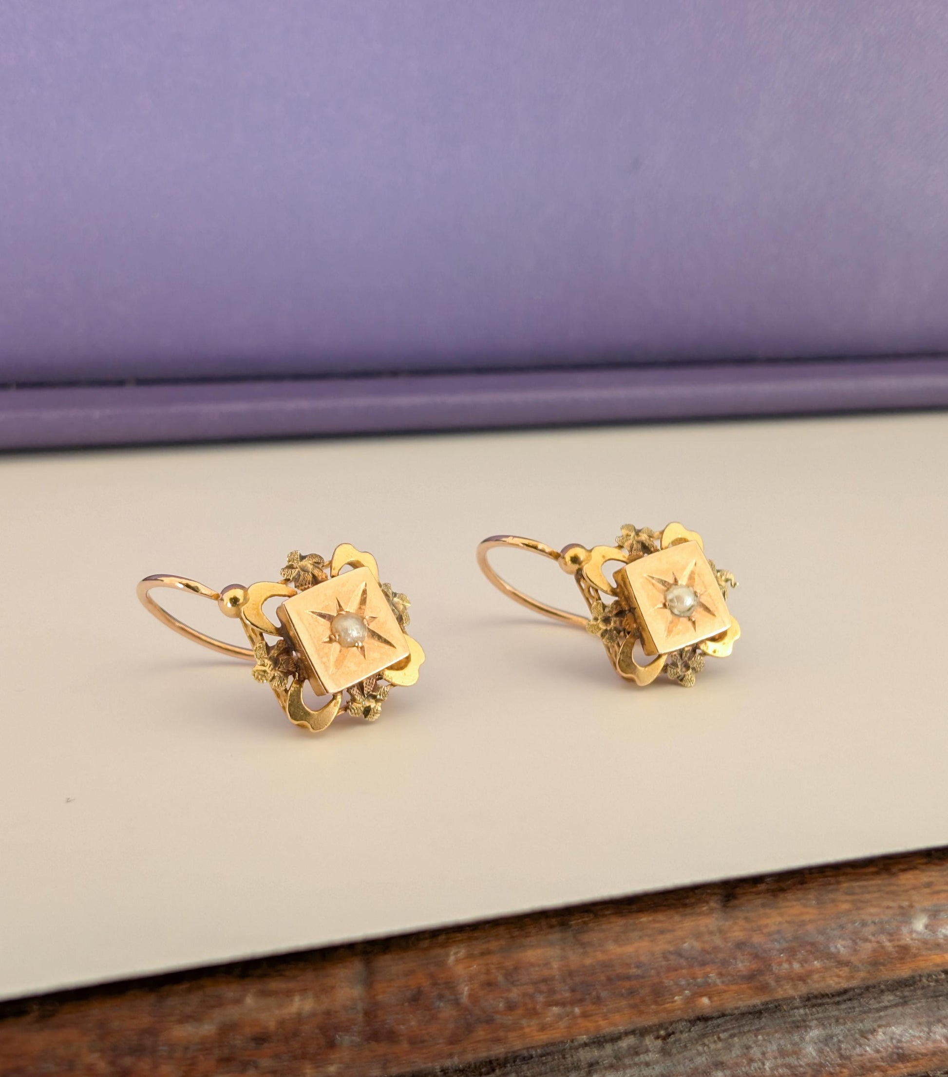 18K Gold Antique Dormeuses Victorian Earrings Gold Earrings with Pearl Napoleon III 18K Gold Earrings gift for her XIX century gold earrings