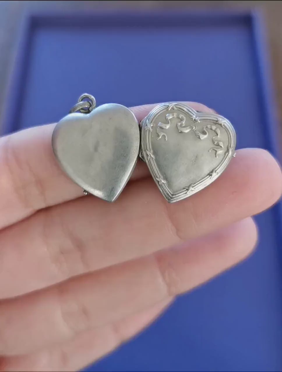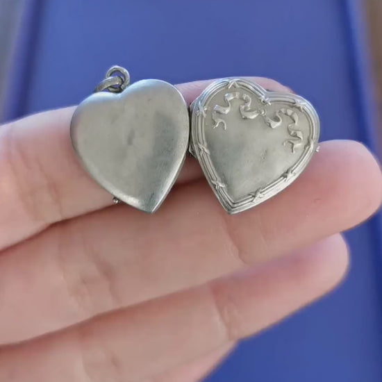 1900s Antique Silver Art Nouveau Ribbon Heart Locket French Antique locket gift for her