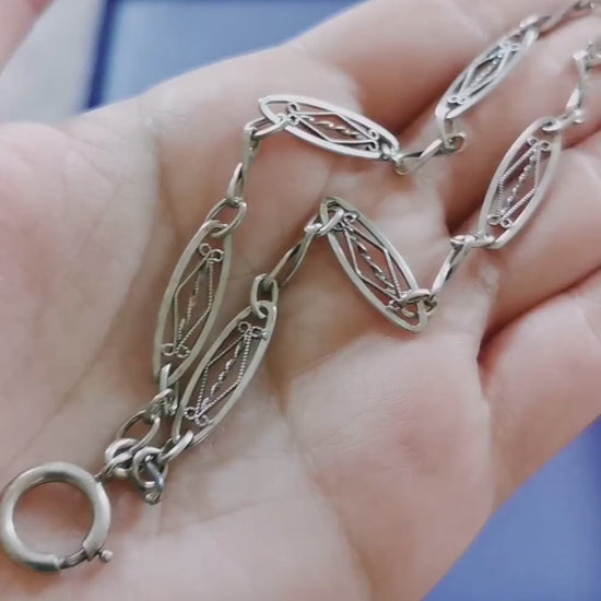 1920s Art Deco French Watch Chain silver double Bracelet with dog clip clasp gift for Her Antique silver bracelet