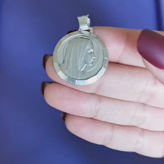 1930 Art Deco Virgin Mary Silver French Religious Medal Antique Silver Virgin Mary Pendant gift for him gift for Her