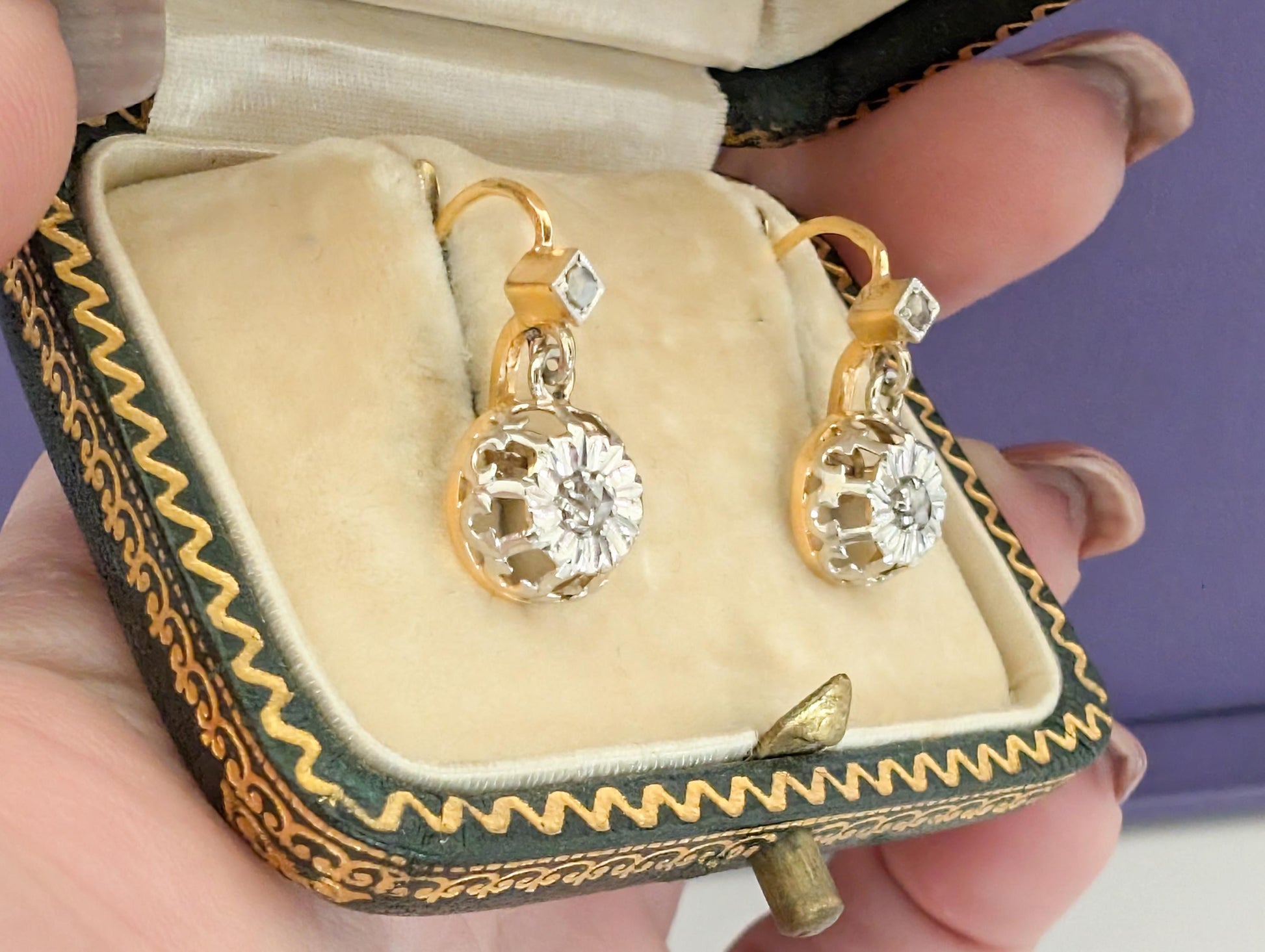 1930s 18K Diamond Earrings Art Deco Earrings 18k Drop Earrings Antique French Sleeper Earrings Antique Diamond earrings gift for her
