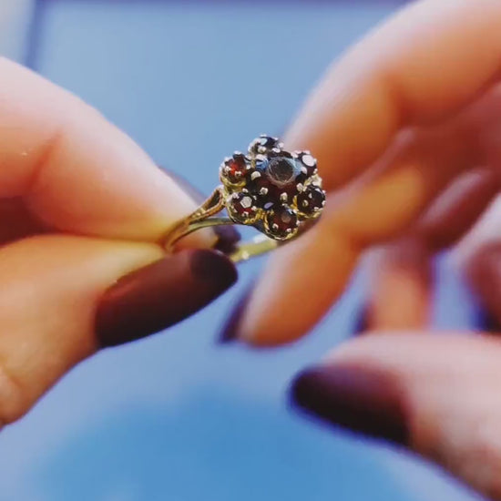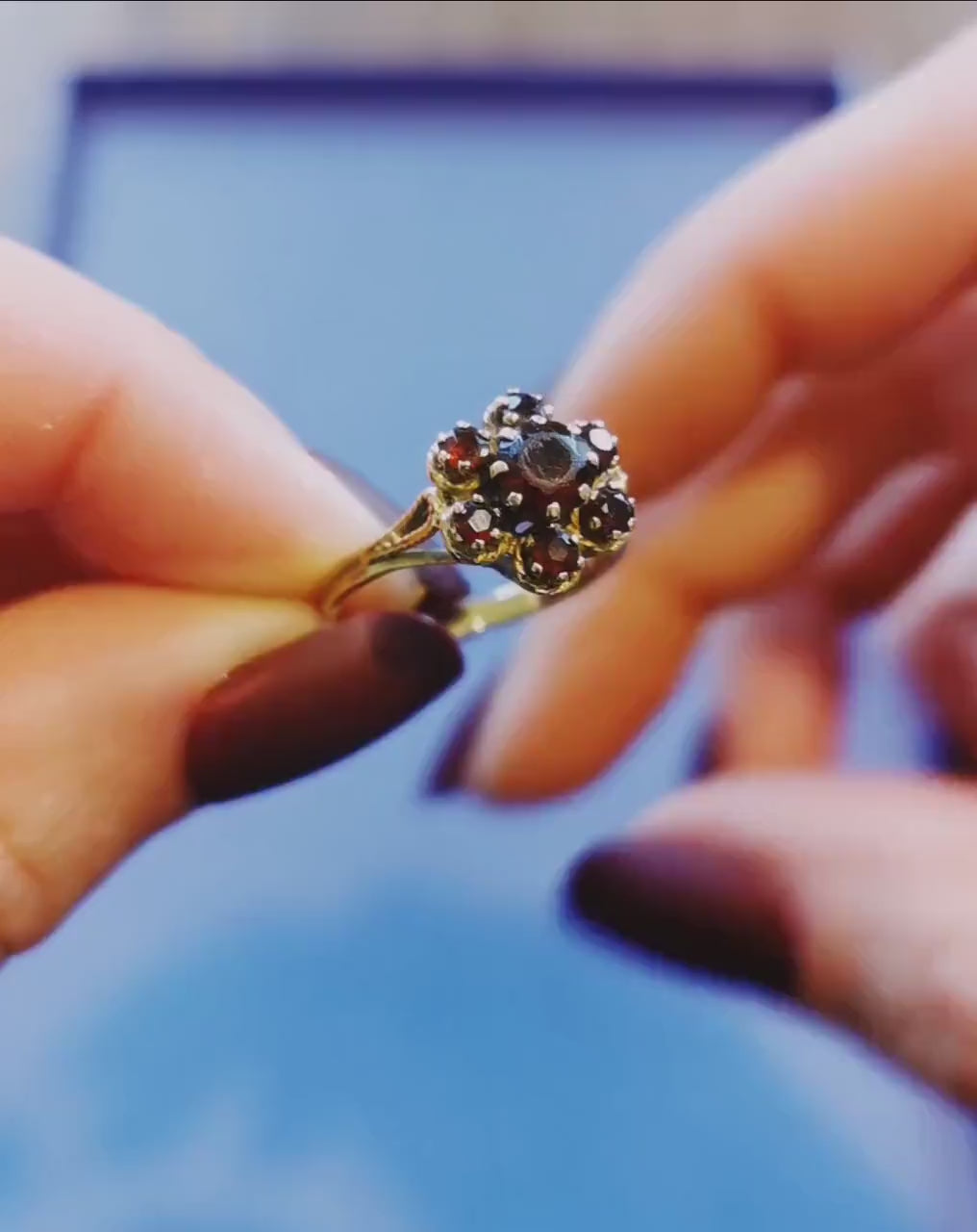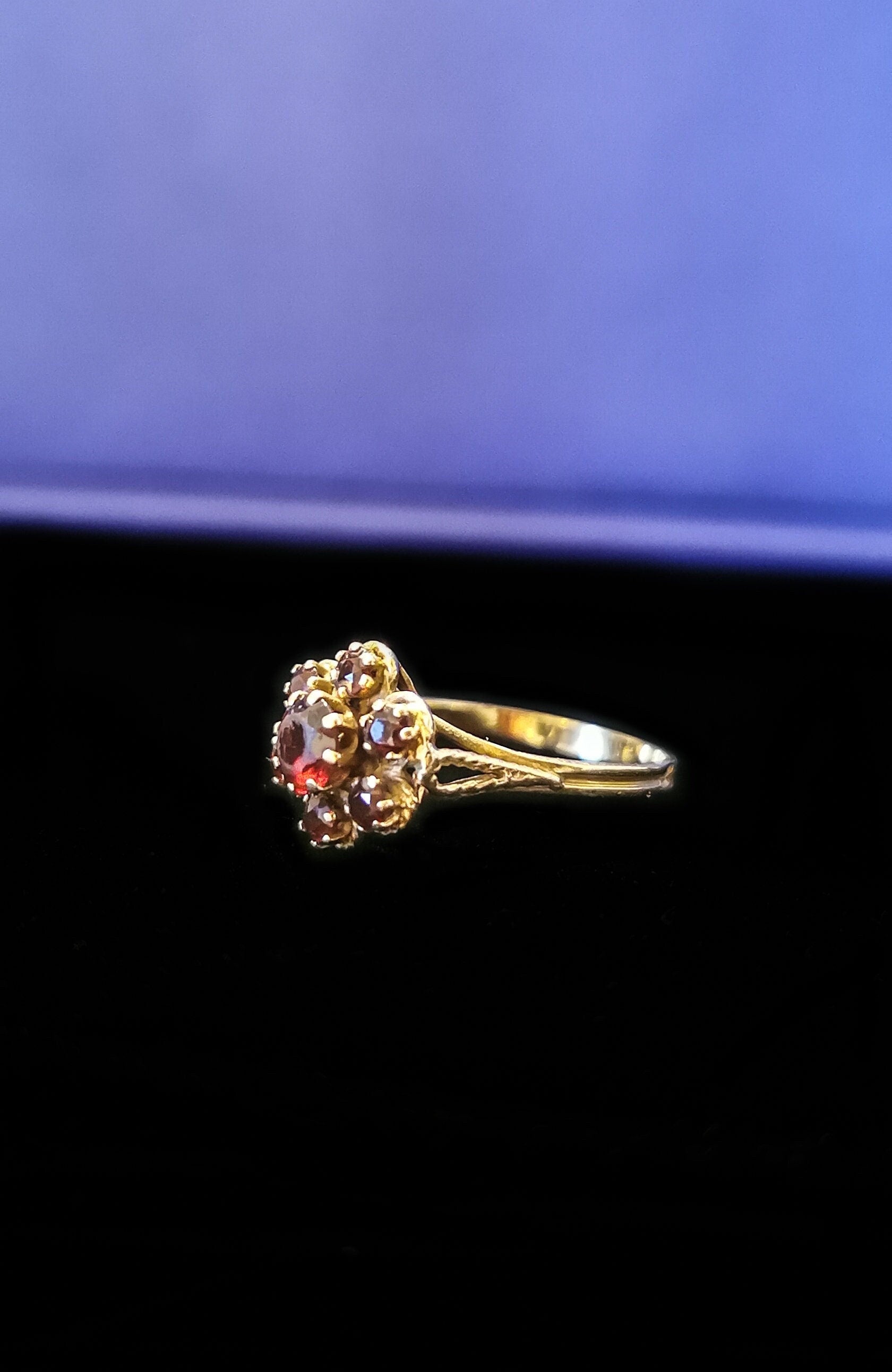 Antique 14ct Gold fire Red Garnet Ring Vintage Cluster Ring Gold Garnet Ring Anniversary Ring Edwardian Garnet Ring Victorian cluster ring