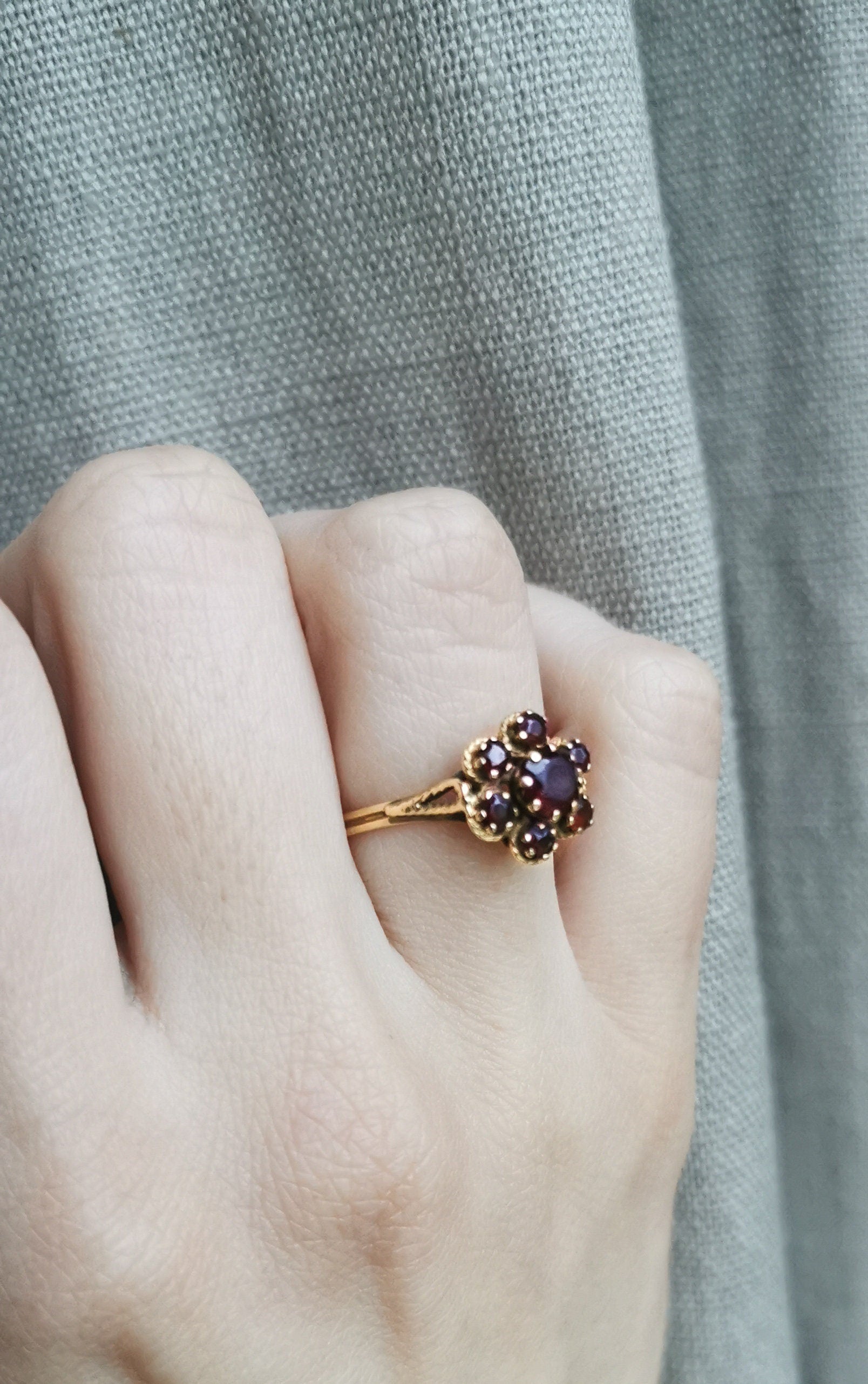 14ct Gold and fire Red Garnet Ring Antique Cluster Ring Gold Garnet Ring Anniversary Ring Vintage Garnet Gold Victorian style Garnet Ring Edwardian Garnet Ring