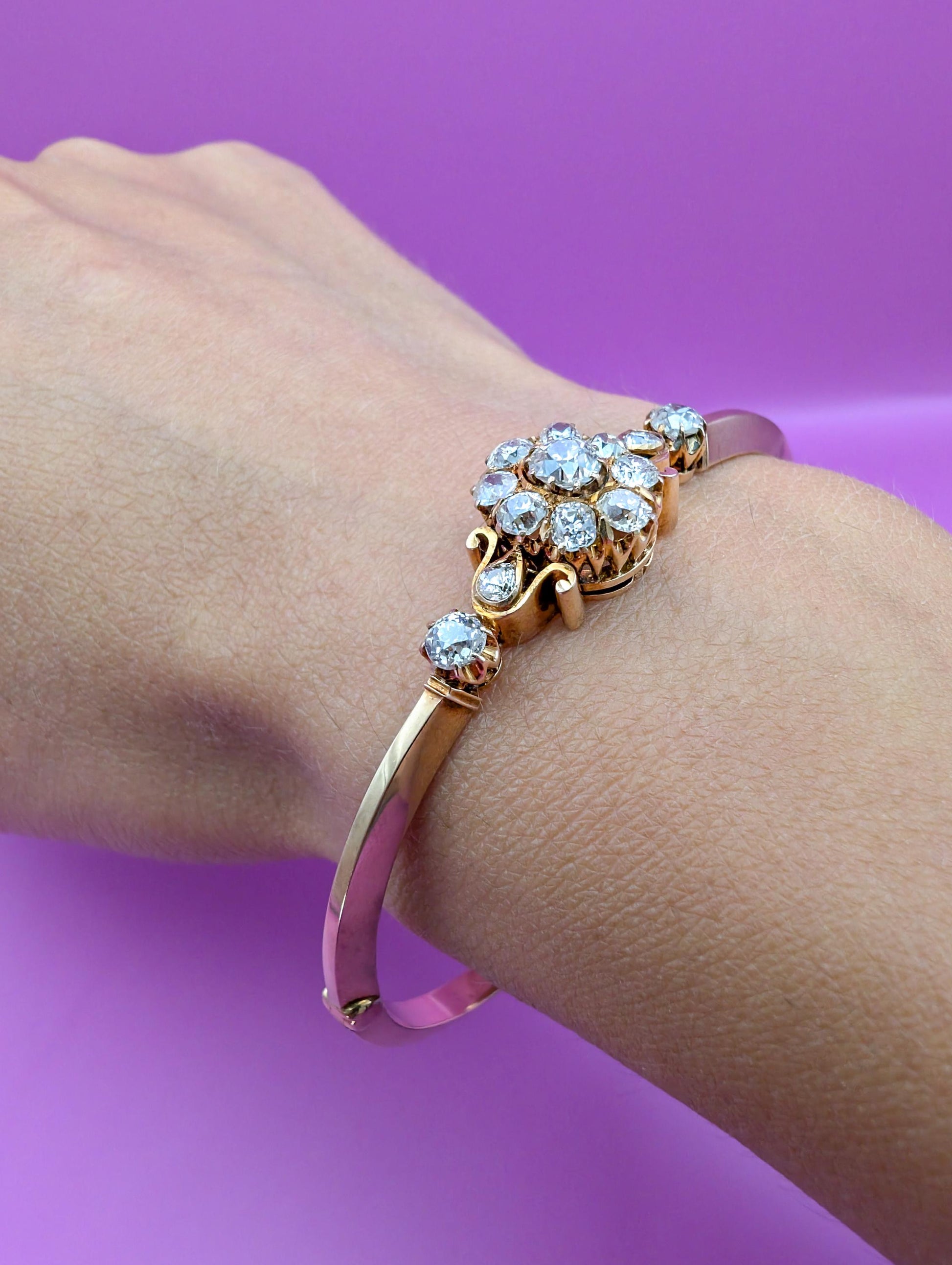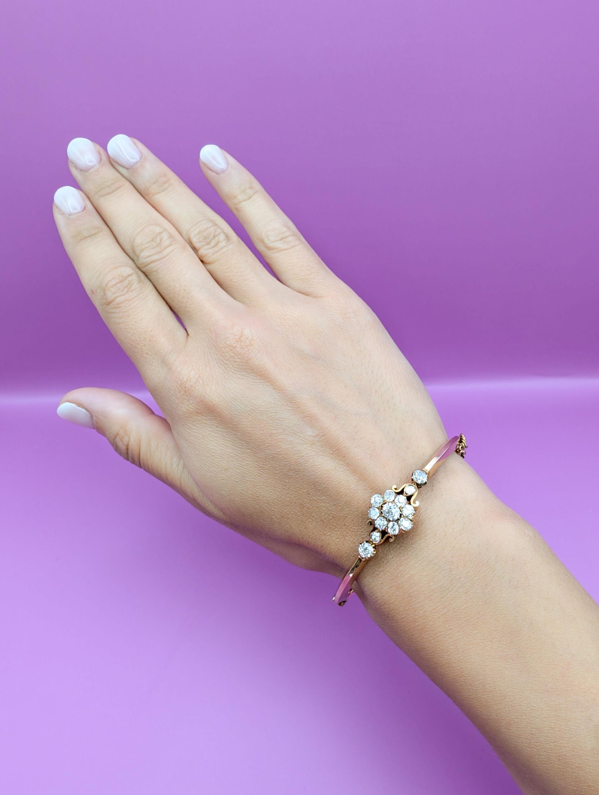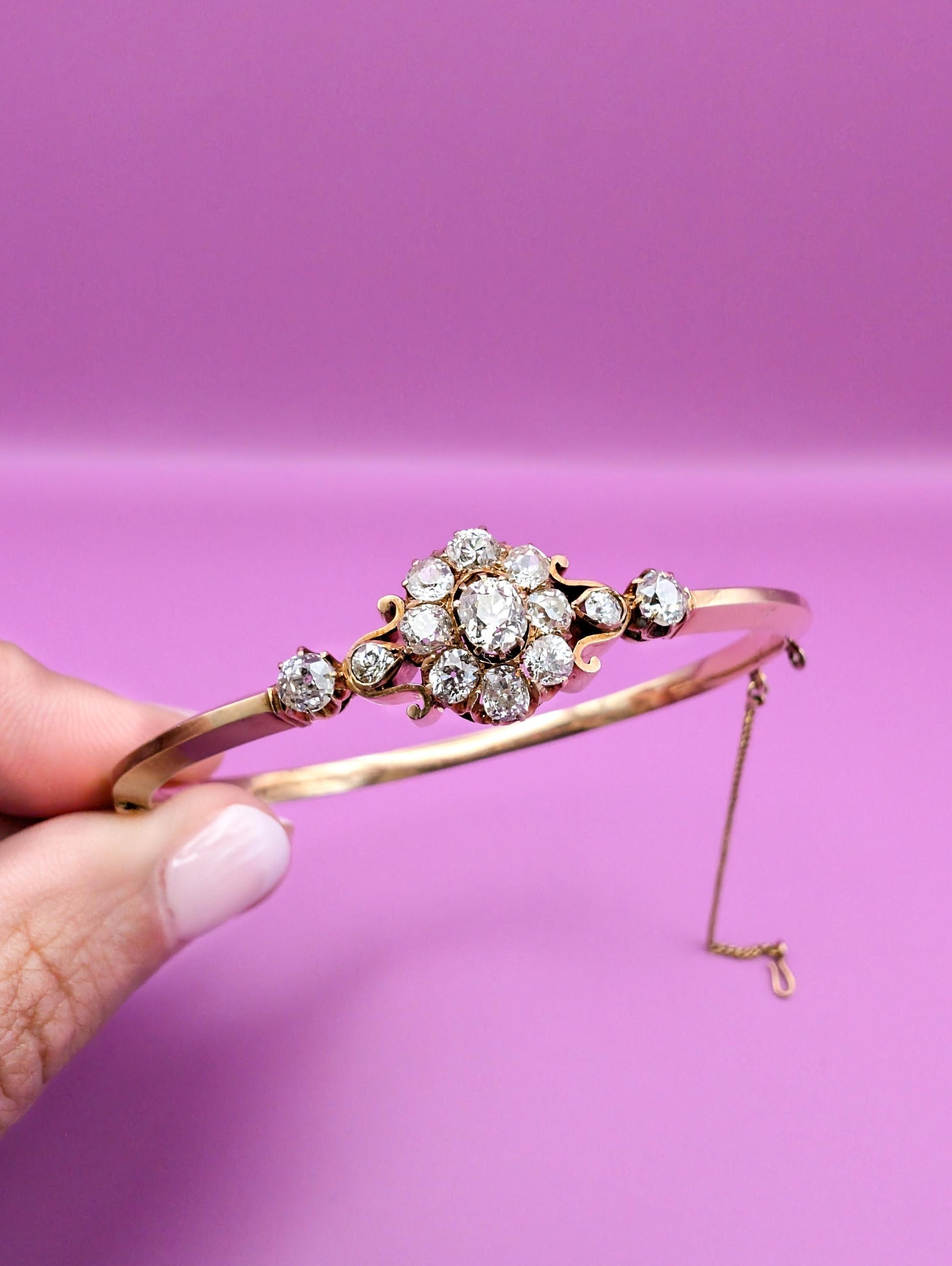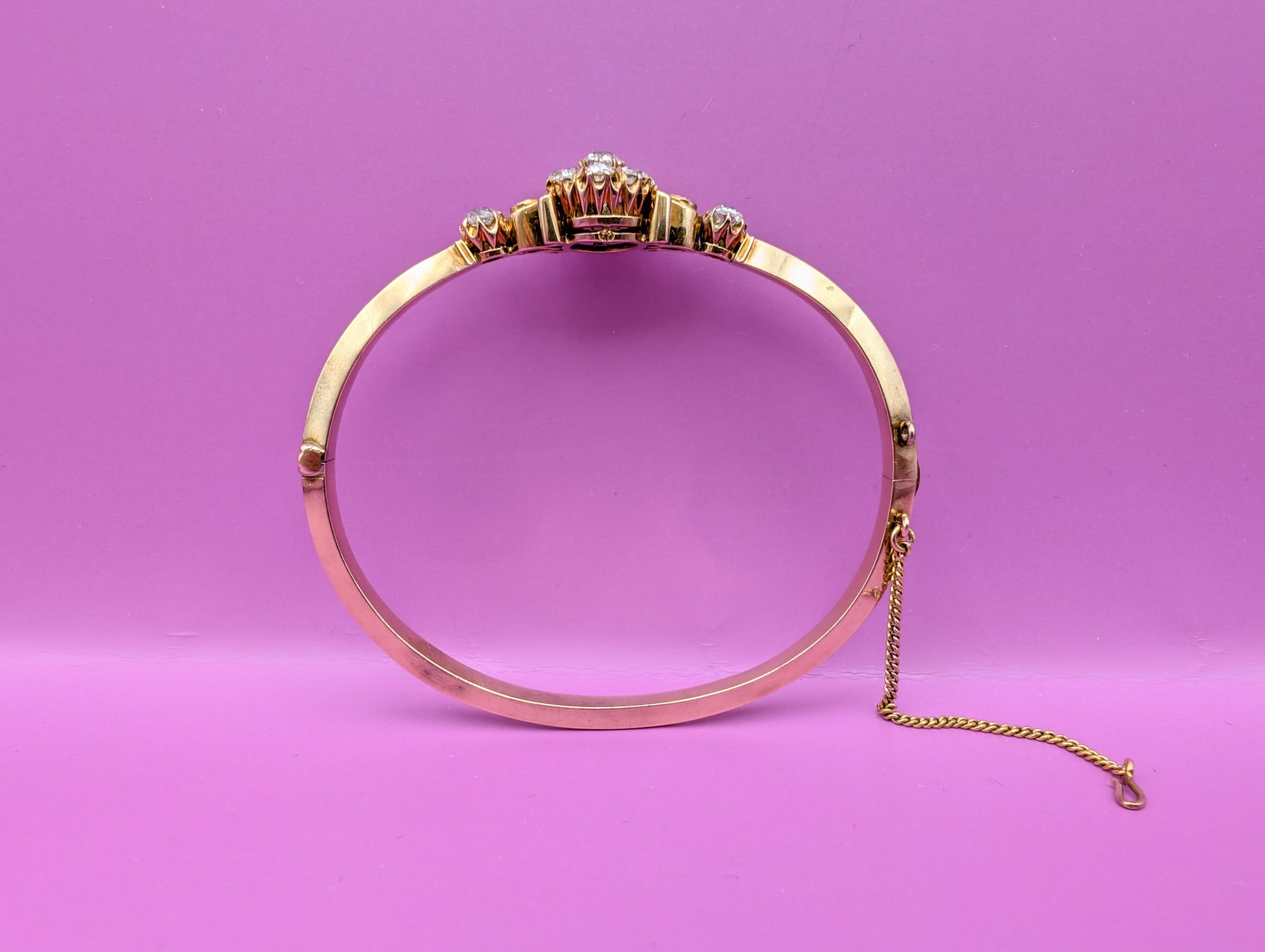 RARE Antique 14K Diamond Bangle Bracelet Edwardian Gold Bangle c. 1880 Diamond Bracelet gift for her