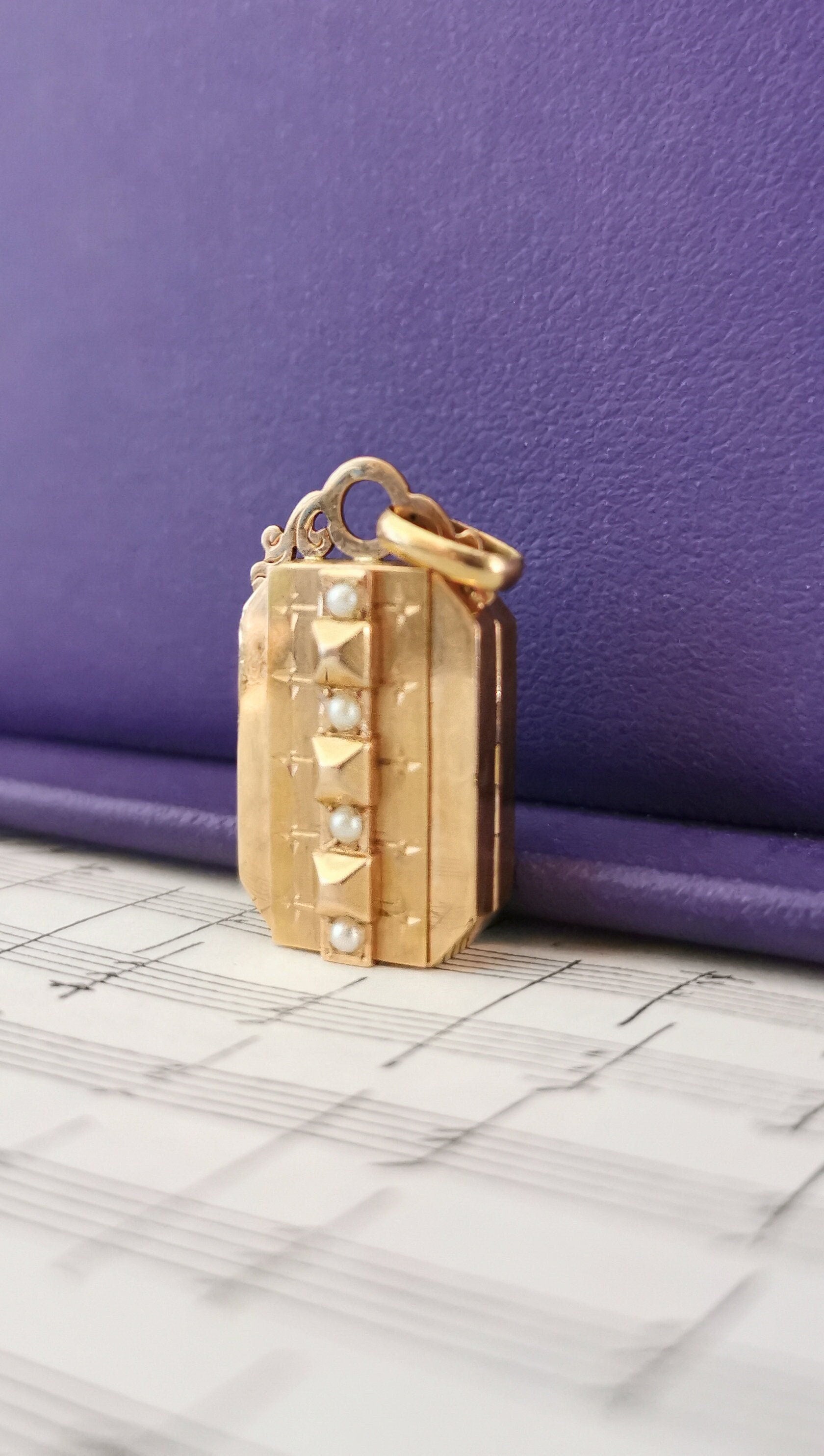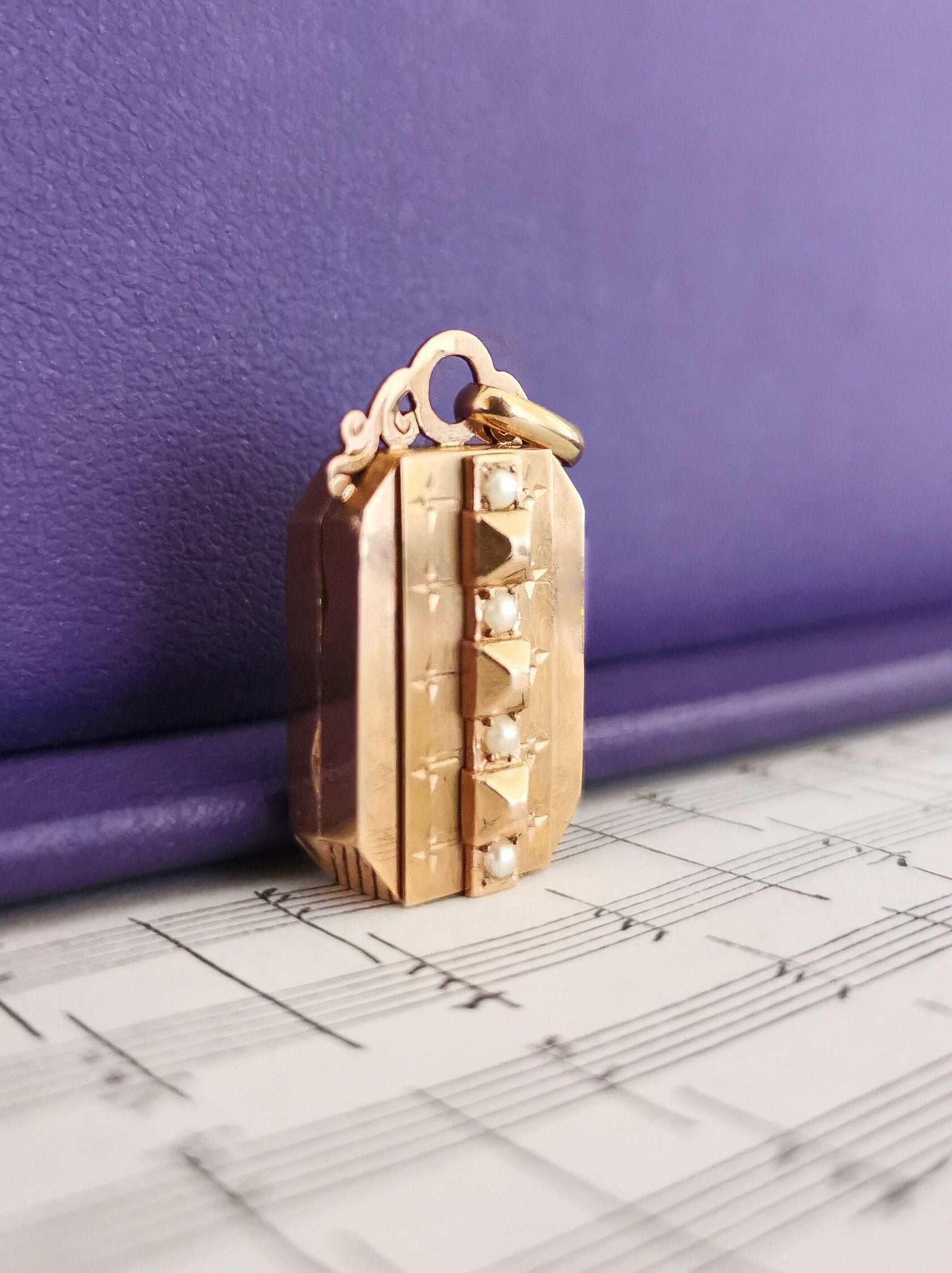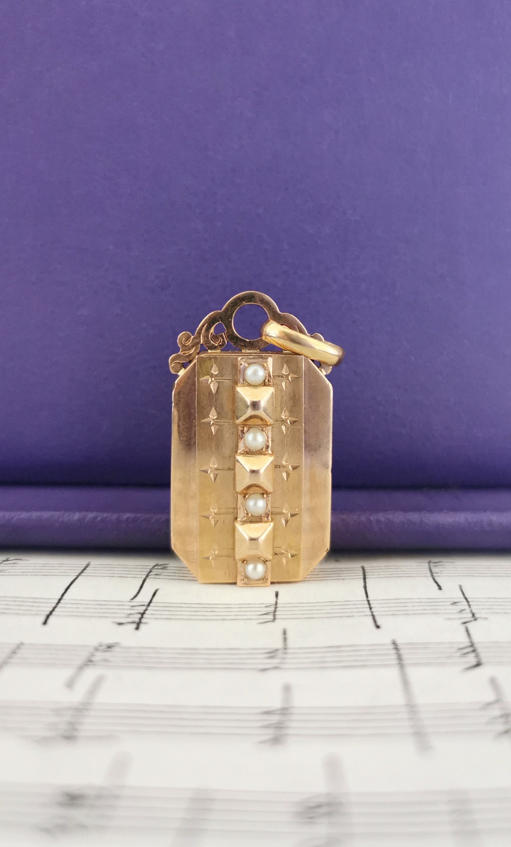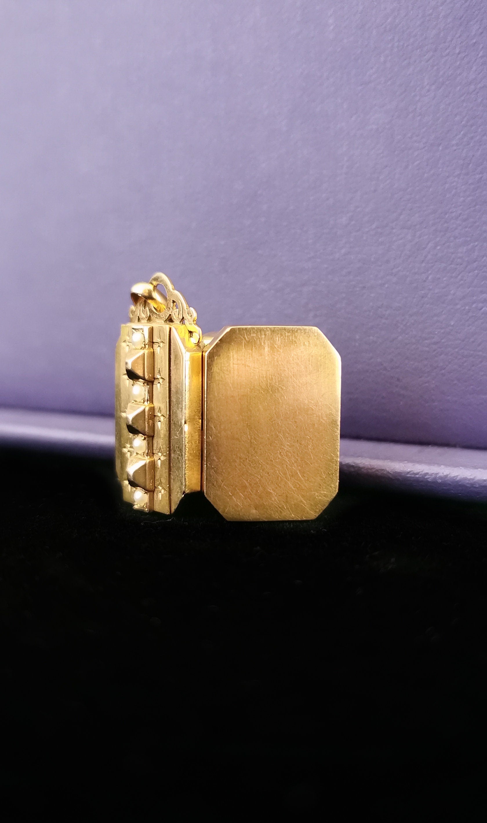Antique 18ct Victorian engraved locket with thick glass partition and Pearls Antique Victorian 18ct Gold locket French Napoleon III Locket