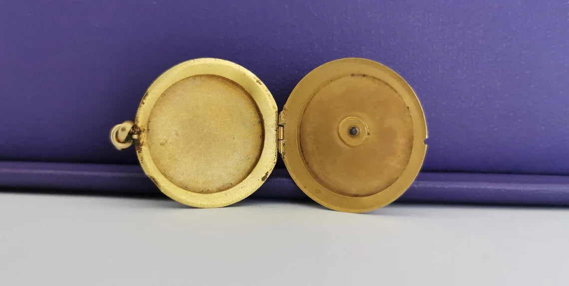This remarkable locket is in excellent vintage condition, bearing only minor micro scratches on the gold, which are consistent with its age and wear but are barely visible when worn, showcasing the remarkable care it has received over the years. With a secure and satisfying snap, the locket closes seamlessly, safeguarding your cherished keepsakes and memories within.
