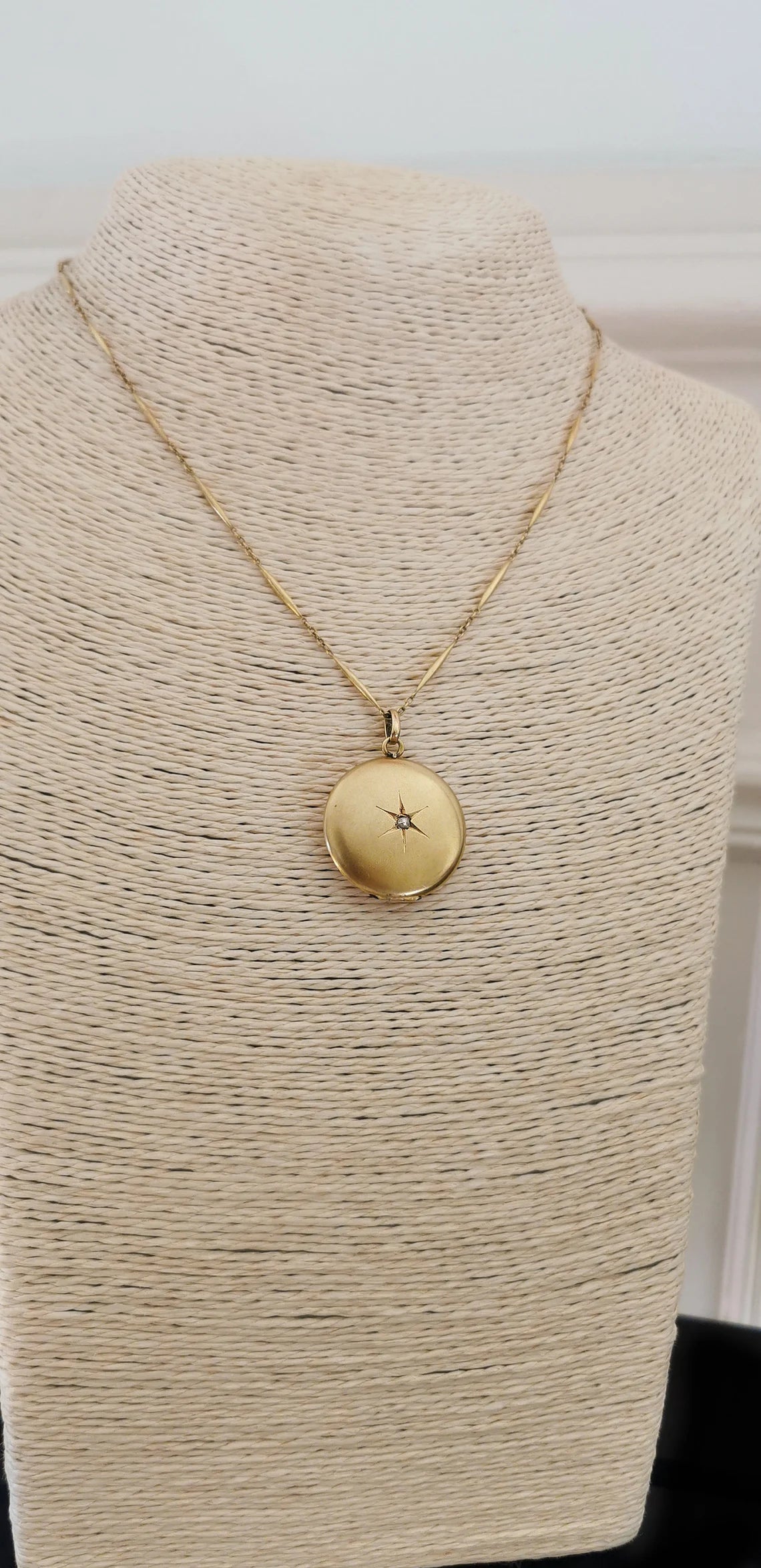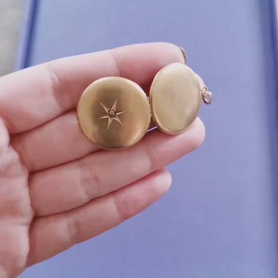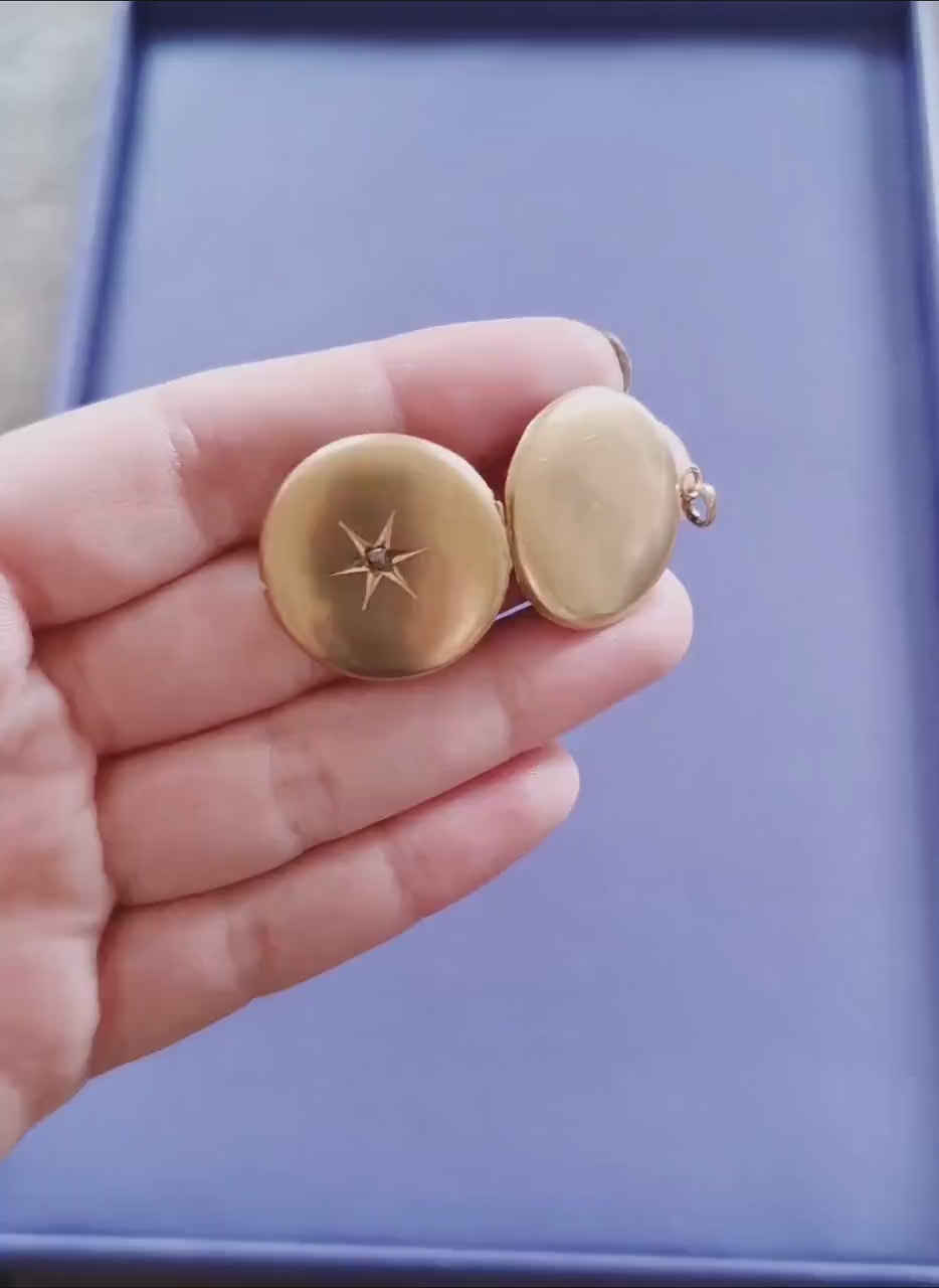 Antique 18K Gold and diamond 1910 Edwardian locket Gold locket starburst locket Gold Photo holder gift for her