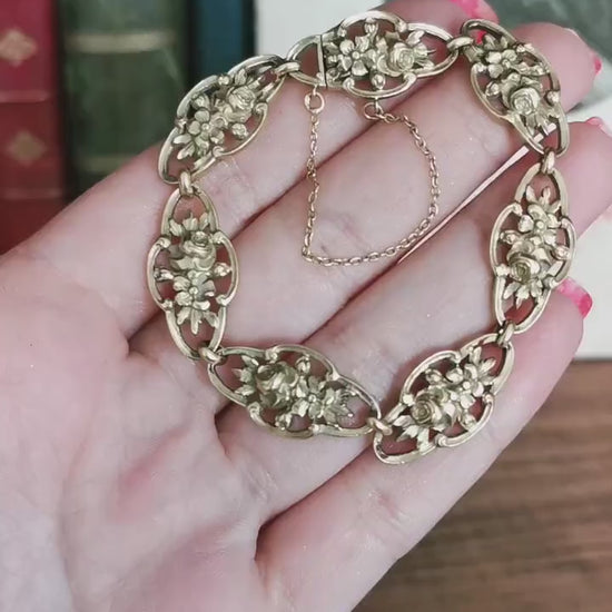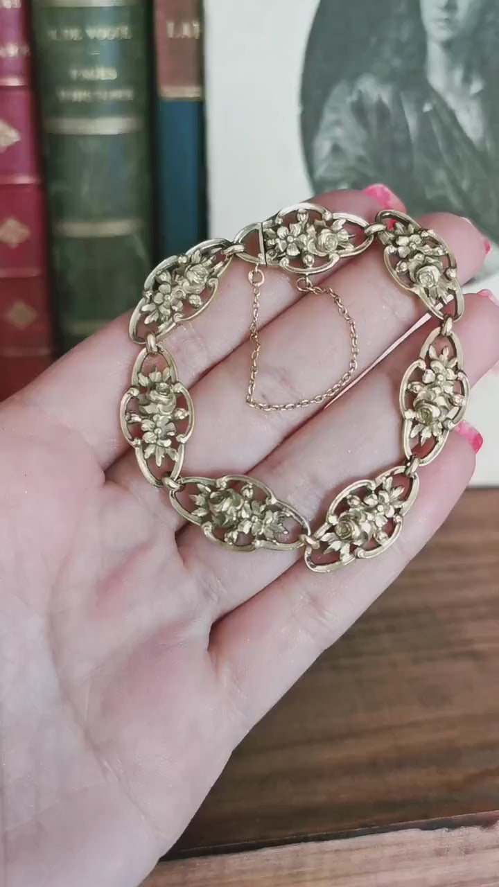 Antique 18K Gold Filigree Bracelet: Art Nouveau Floral Design