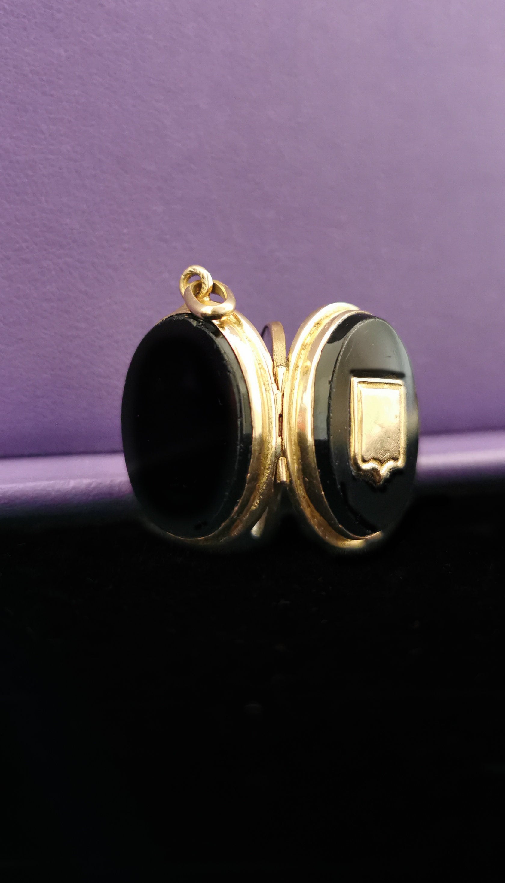 Antique 18K Gold Victorian onyx locket Napoleon III Reliquary photo holder XIX century Mourning locket Gift for Him Gift for Her