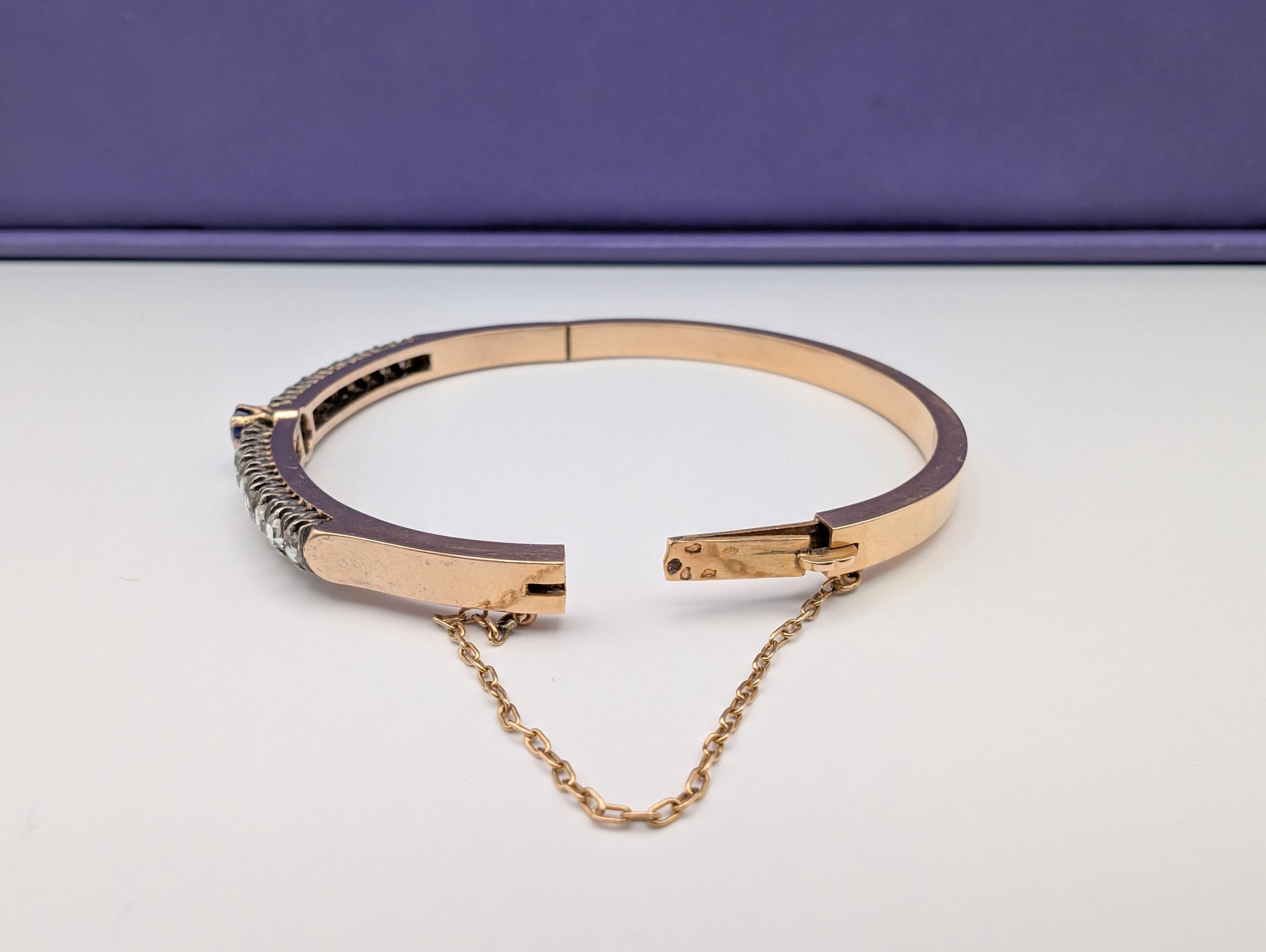Antique 18K Rose Gold Diamond Bangle: French Victorian Sapphire Bracelet