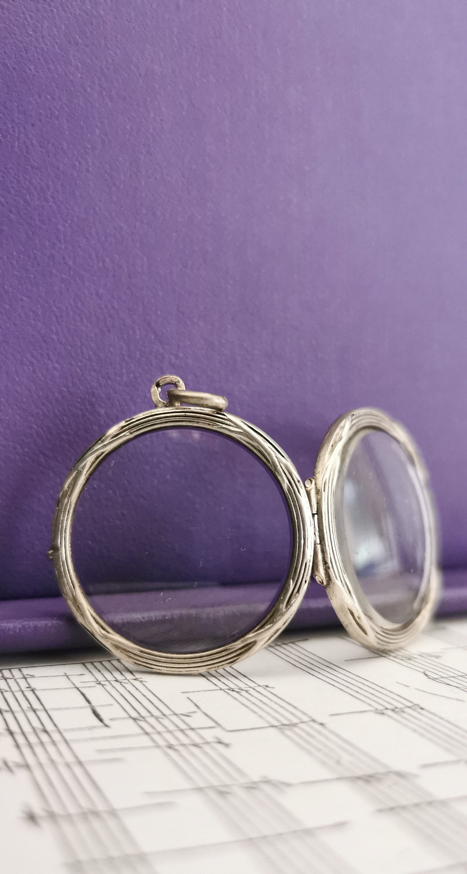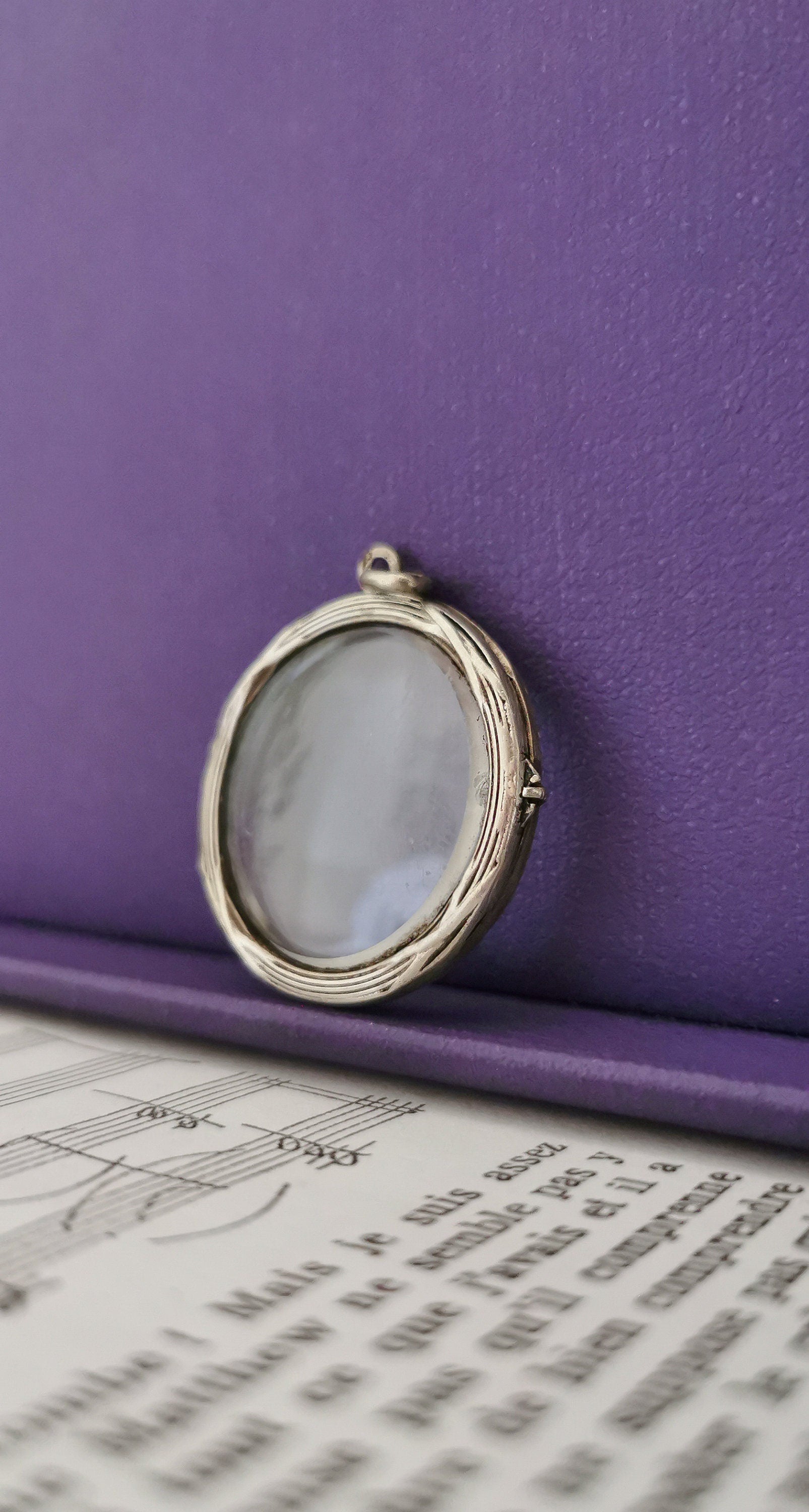 Antique 1900 Edwardian Silver French locket Silver glass locket Antique Photo holder Antique porte photo Glass locket Gift for Her