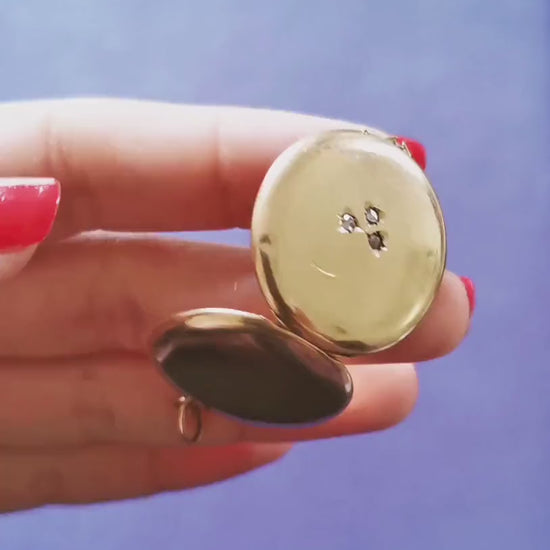Antique Diamond 18K Gold Clover 1890 Art Nouveau locket Antique French lucky Gold locket Gold Photo holder gift for her