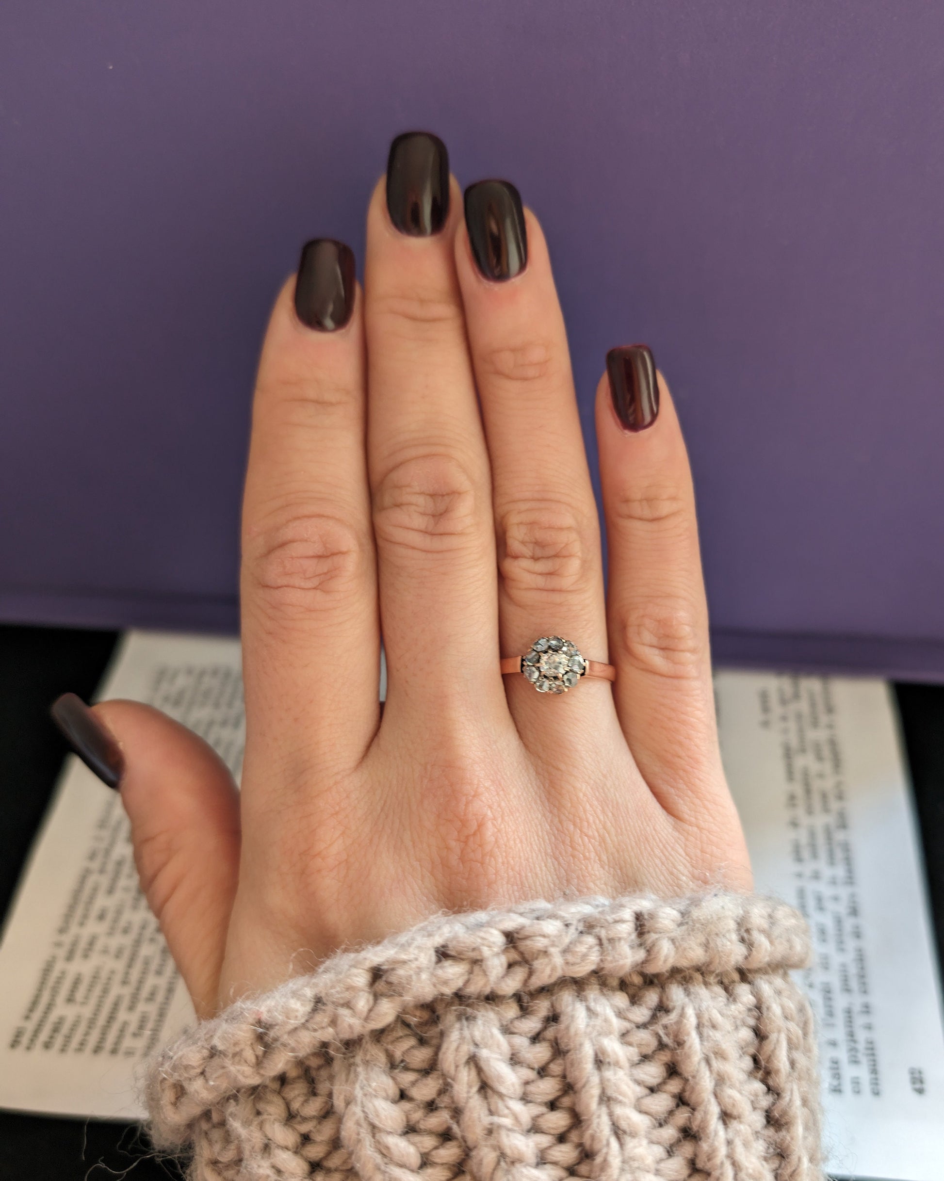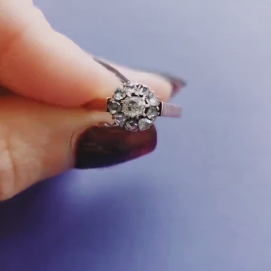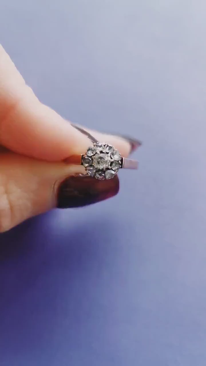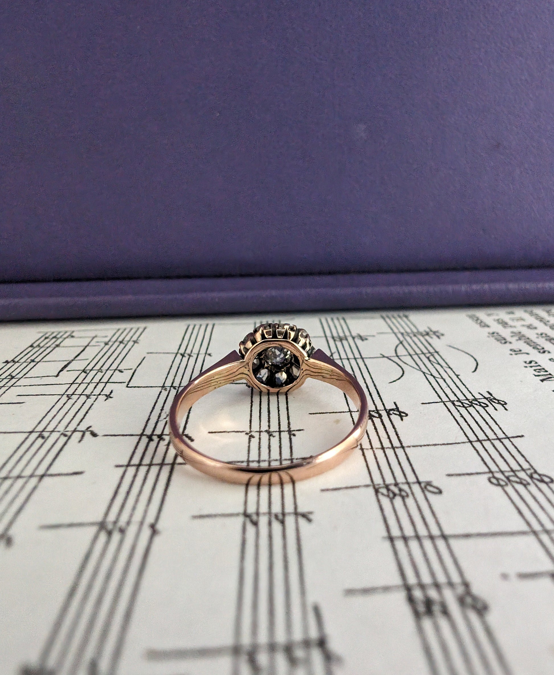 Antique 18K Rose Gold Diamond Ring Edwardian 18K Gold Diamond Daisy Cluster Ring Antique French Ring c. 1900 Diamond ring Gift for her